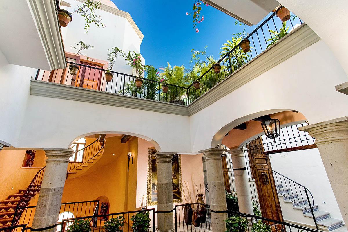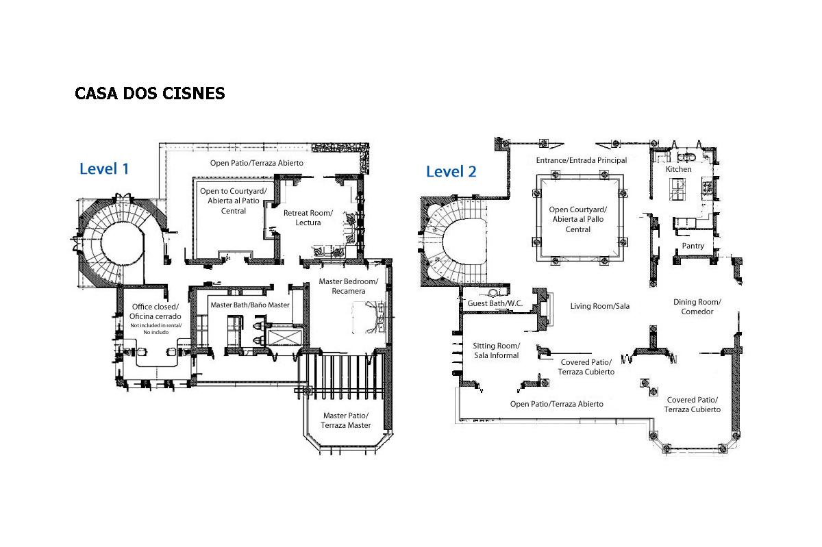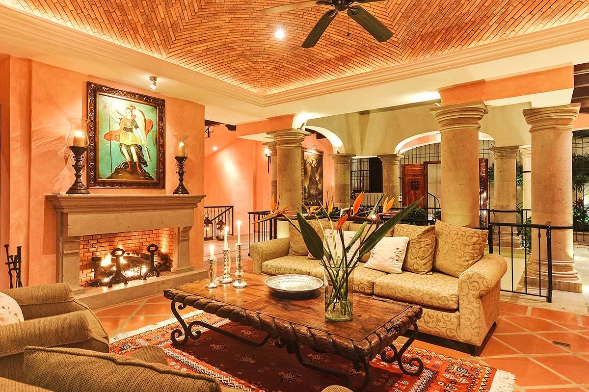 Casa Dos Cisnes is a luxury five bedroom, five and two 1/2 bath Mexican colonial-style home located high in the hills of the Sierra Madre mountain chain in the exclusive Conchas Chinas neighborhood, a five minute drive away from the Romantic Zone in the Old Town of Puerto Vallarta. Built on four levels around a central courtyard, the house has approximately 10,000 square feet of living area with spectacular views overlooking the Bay of Banderas. The infinity pool, dramatic winding staircase, hacienda-style iron chandeliers, multiple fountains and weeping walls, brick bovedas, high-beamed ceilings, fully-equipped exercise gym, large media/entertainment room and full-time staff will satisfy the expectations of the most discriminating of travelers. From any one of several terraces or balconies at Casa Dos Cisnes, you will find awe inspiring panoramic views of the Bay of Banderas framed by colonial period Mexican arches, antique furniture and art. All bedrooms are air conditioned with ceiling fans. The dining room comfortably seats up to twelve people and the house contains a total of twelve rooms that provide bountiful areas to socialize in large groups as well as smaller spaces for more intimate gatherings. A restful stay is assured by a complete full-time staff including cook, housemaid and butler. The large open layout with multiple terraces easily accommodates wedding parties and business events in an elegant hacienda setting reminiscent of the colonial period juxtaposed against stunning views of the Bay of Banderas which combine for unforgettable, once-in-a-lifetime events. Caught between the luminous and eternally blue sky above and the buffeting waters of the Pacific Ocean below, you and your guests will fall under the same spell as the legendary Dos Cisnes who nested in the hills of Conchas Chinas, never to return to their homeland. With the spectacular views overlooking the Bay of Banderas, you will grasp all things beautiful, be immersed in the mysteries of nature, feel the savage splendor of the jungle landscape, experience unforgettable relaxation, encounter chances for development, and make your dreams come alive.
