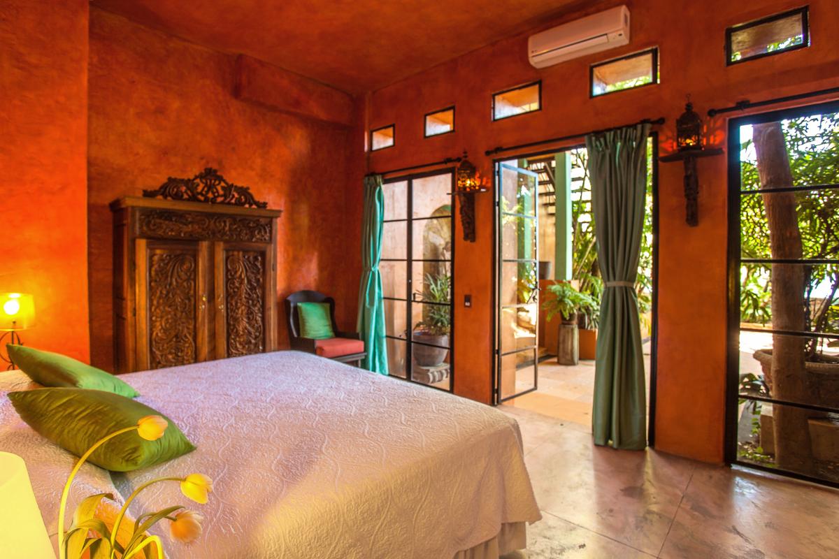 - Bedroom 7: king bed (can be converted into king bed), en suite bathroom, hair dryer, robes, toiletries, AC, ceiling fan, private terrace. The orange master suite is a large bedroom just one flight up from the Pool Terrace. This bedroom provides secluded ambiance and easy pool access.