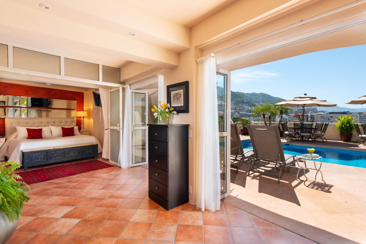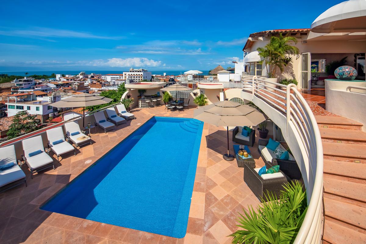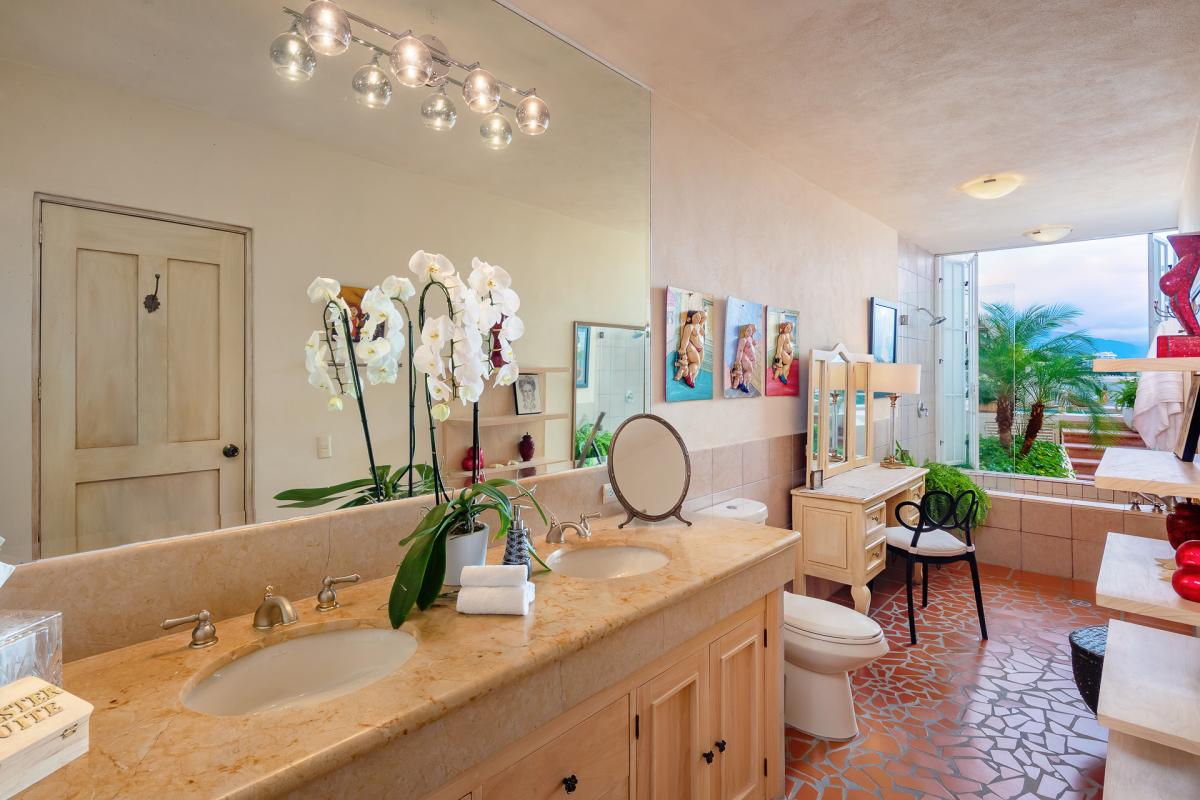 Casa Tabachin is a spectacular 8 bedroom private villa located hillside above the charming downtown/historic zone of Puerto Vallarta. One of the original homes of Gringo Gulch, built by well known local architect Fernando (Freddy) Romero, in the classic Colonial Mexican style. In the early 1960's when Director John Huston came to film the movie Night of the Iguana, he rented Casa Tabachin. Casa Tabachin has a clean contemporary design which is a perfect backdrop for the fabulous artwork collection here. The property has blended intimacy and charm and now has a large heated pool and sunny terrace along with the option to rent from 4-8 bedrooms. All just a few steps to the beach or the charm and energy of the town, with shopping, amazing dining, and nightlife.