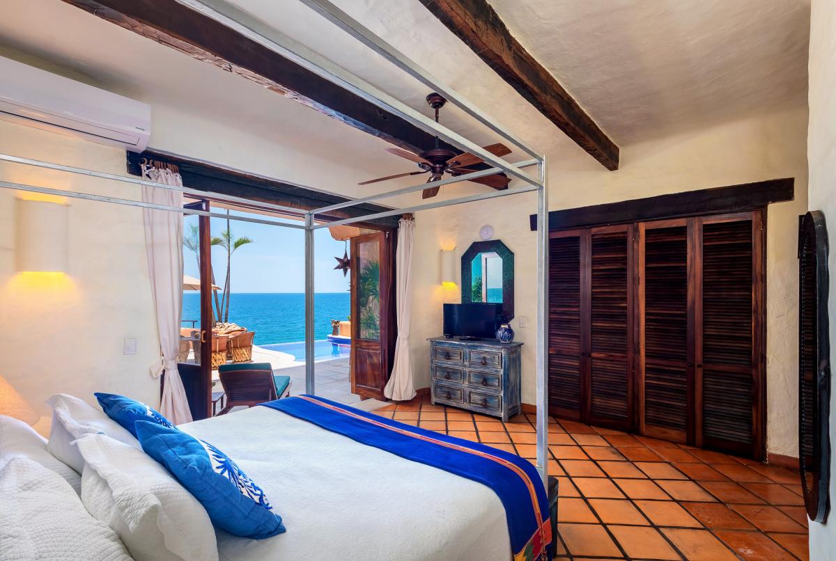 Traditional Mexican furniture graces the terra cotta floors and antique hand-hewn beamed ceilings hanging overhead. The villa has been refreshed and lovingly restored with attention paid to every detail. With the addition of artwork and electronic upgrades, guests will delight in all the comforts Villa Azul Celeste offers.