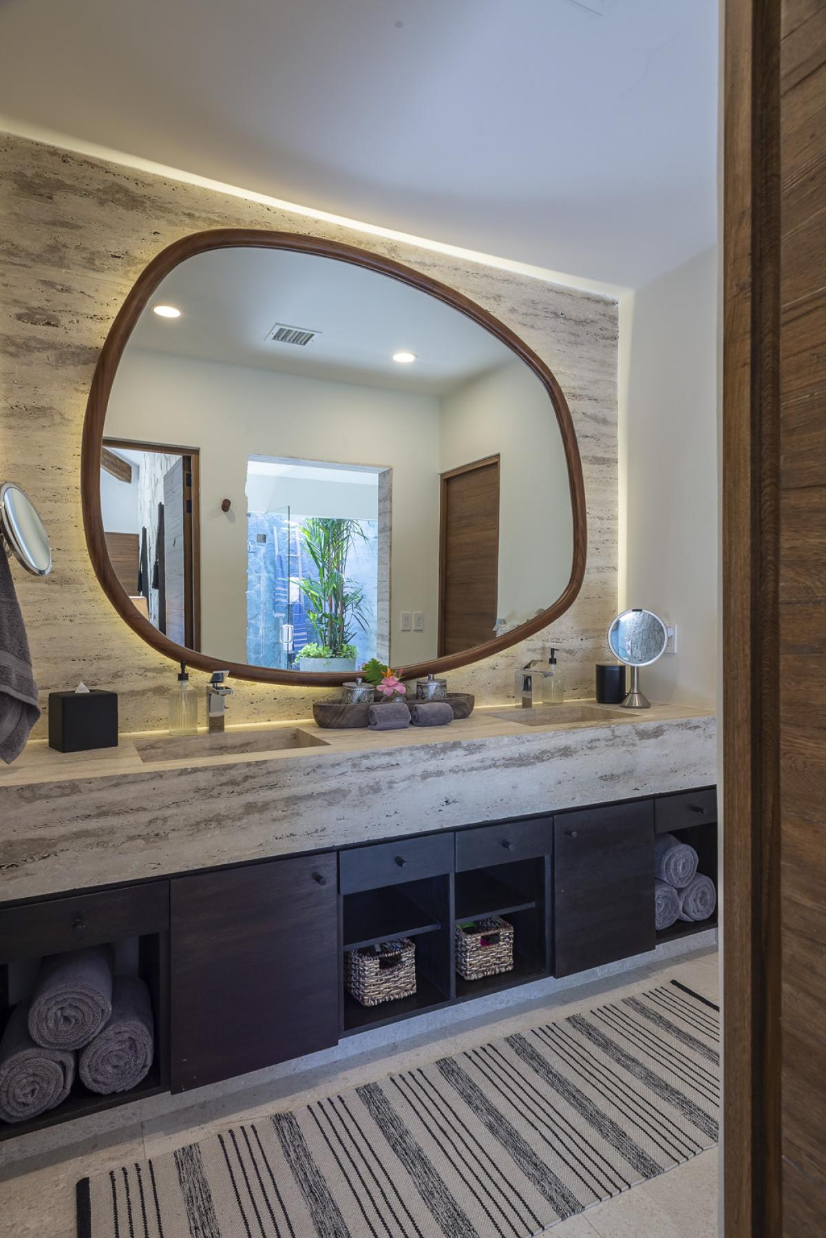 This 3 bedroom stunning single level house in Las Palmas Punta Mita impresses guests right from the start with a moroccan light fixture and beautiful large carved wooden door that leads you into the villa. 3 Bedroom Villa Las Palmas can sleep up to 10 guests, it comes with a master suite, a bunk and guest room.
