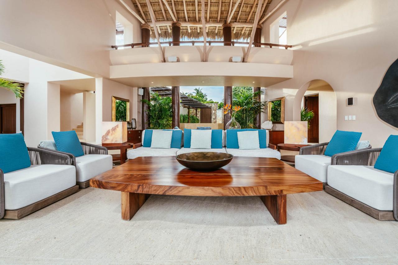 At Caida de Agua, you will find yourself immersed in modern Mexican architecture, exquisite tropical scenery, magnificent views, and warm ocean air. Caida de Agua, whose English translation is "The Fall of Water," welcomes you, aptly, with a stunning water fountain which escorts you into a spacious palapa covered open living room, inviting you to begin an experience of pampering and luxury. The concierge will accommodate your every whim, ensuring your stay is just as you dreamed it would be, whether that entails leisure or adventure, or a little of both.