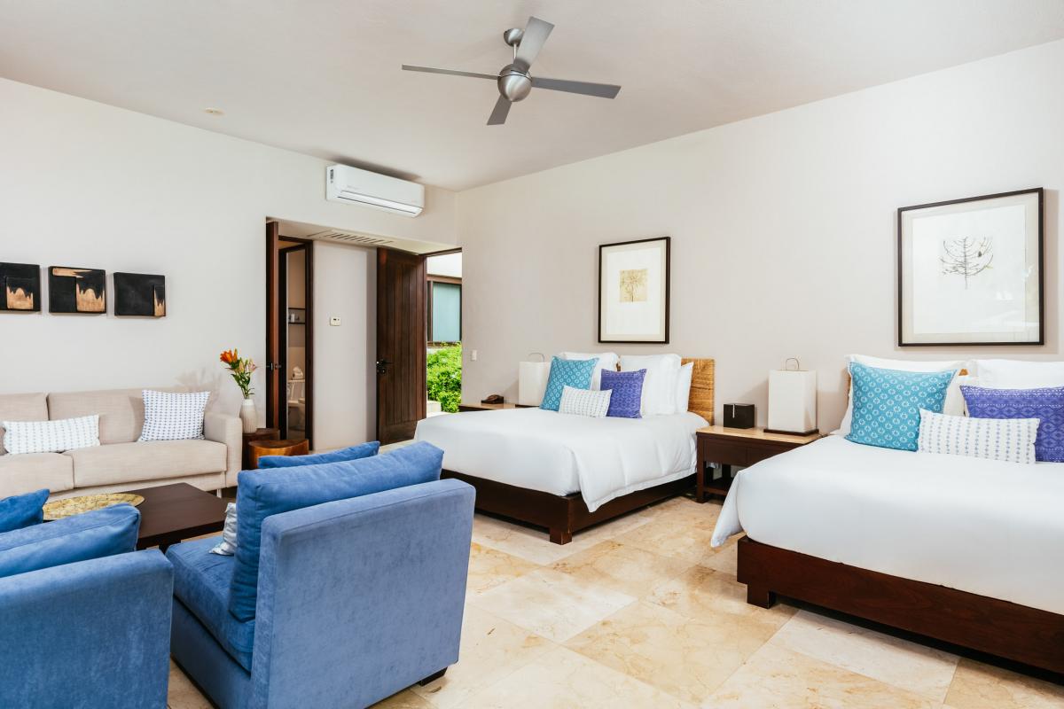 - Bedroom 5 "Arroyo": 2 Double beds, en suite bathroom, AC, ocean view, second floor