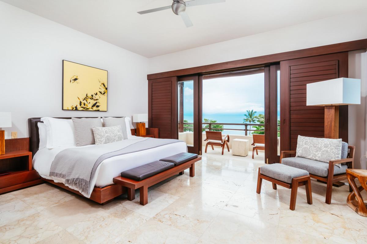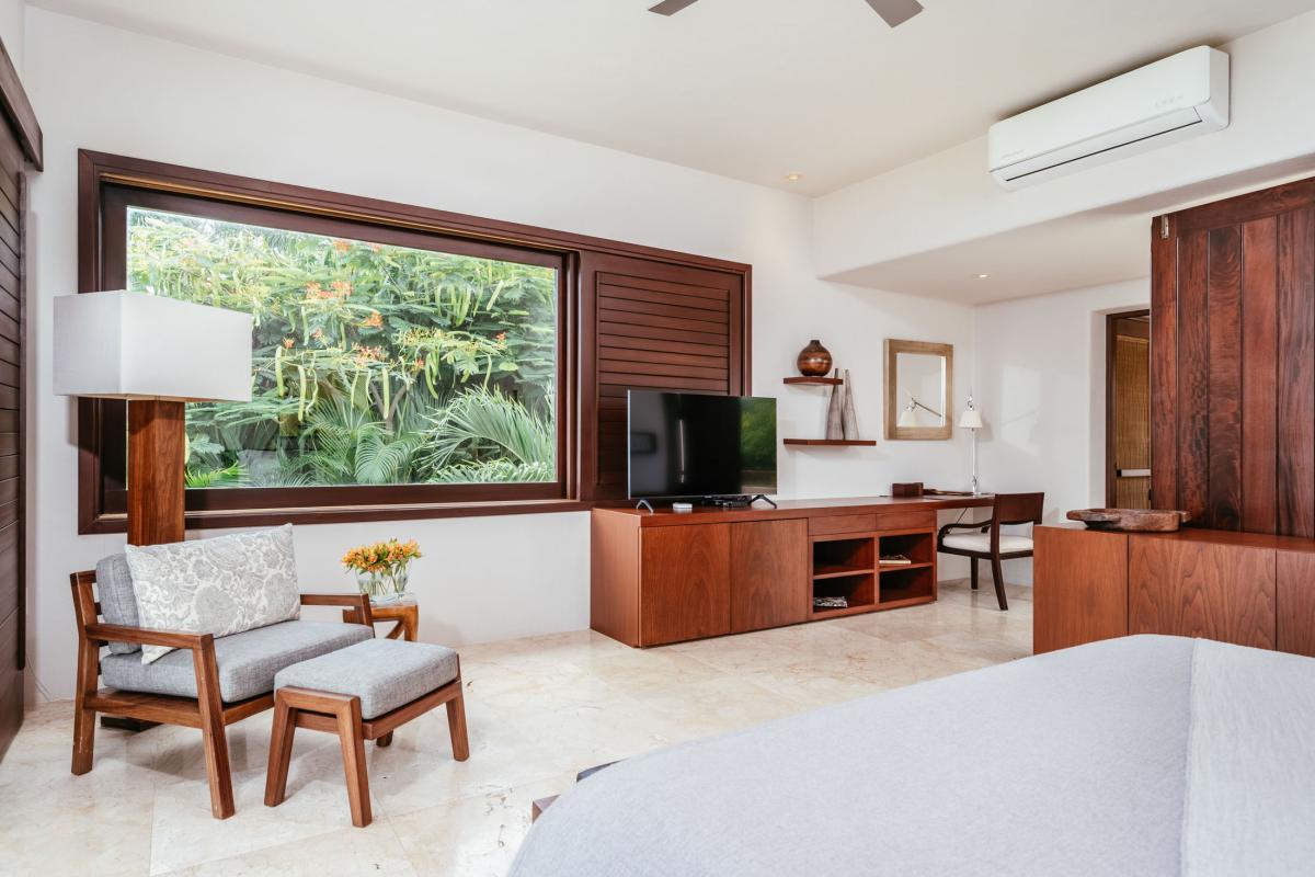 - Primary Bedroom 1 "Mar": King bed, en suite bathroom, AC, ocean view, ground floor