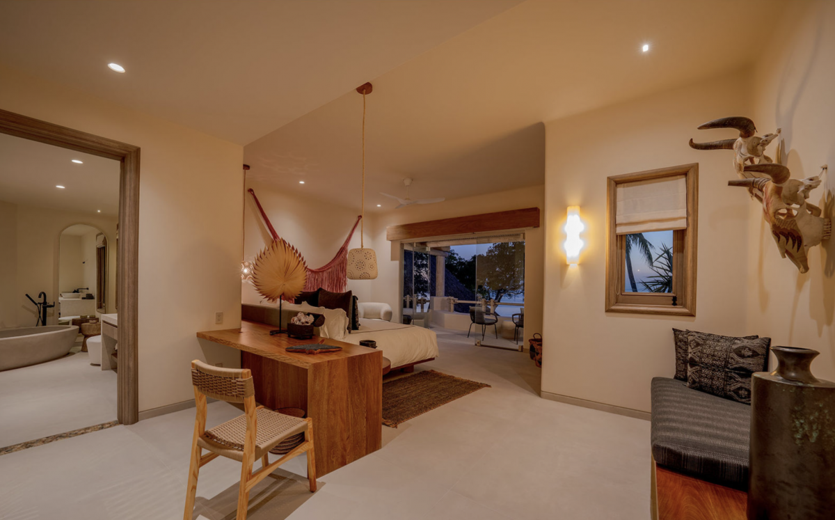 - Bedroom 4: King bed, en suite bathroom with stand along shower & bathtub, walk-in closet, TV, AC, desk, safe, ceiling fan, private terrace, access to pool area, ocean view