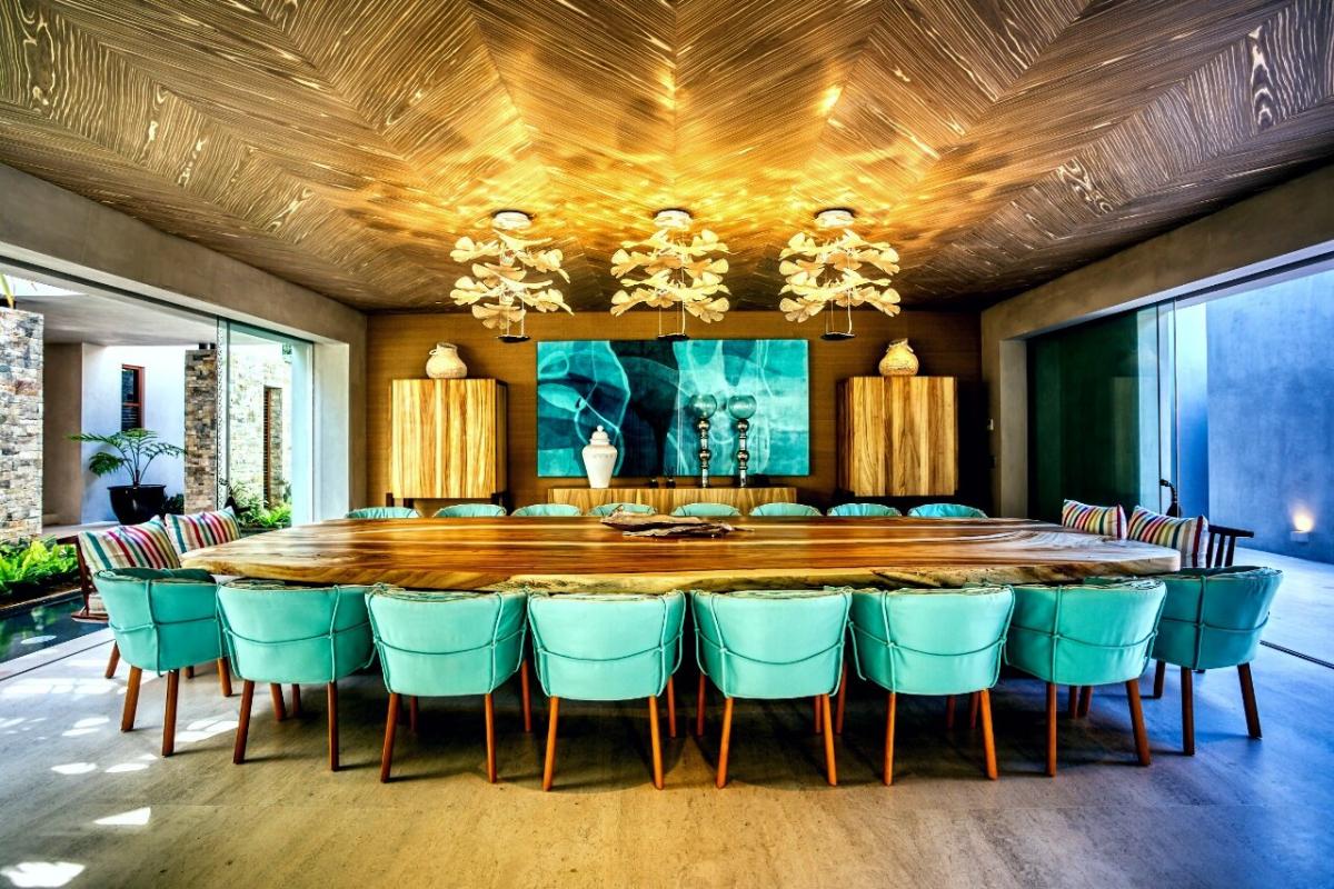 Casa del Oso offers fabulous amenities and services. To start this luxury villa in Punta Mita is located within a gated community. The estate comes with 60,000 square feet of indoor and outdoor spaces. Inside guests enjoy a private wine cellar with dining area for 8, a home theatre with 150" screen, a steam room and infrared sauna. For the more active guests the house includes a customer designed UHD gold simulator, a bowling alley, a fitness suite with premium equipment, two golf cart, a private meditation/yoga room, and a game room (including pool table, ping pong table, and card table).