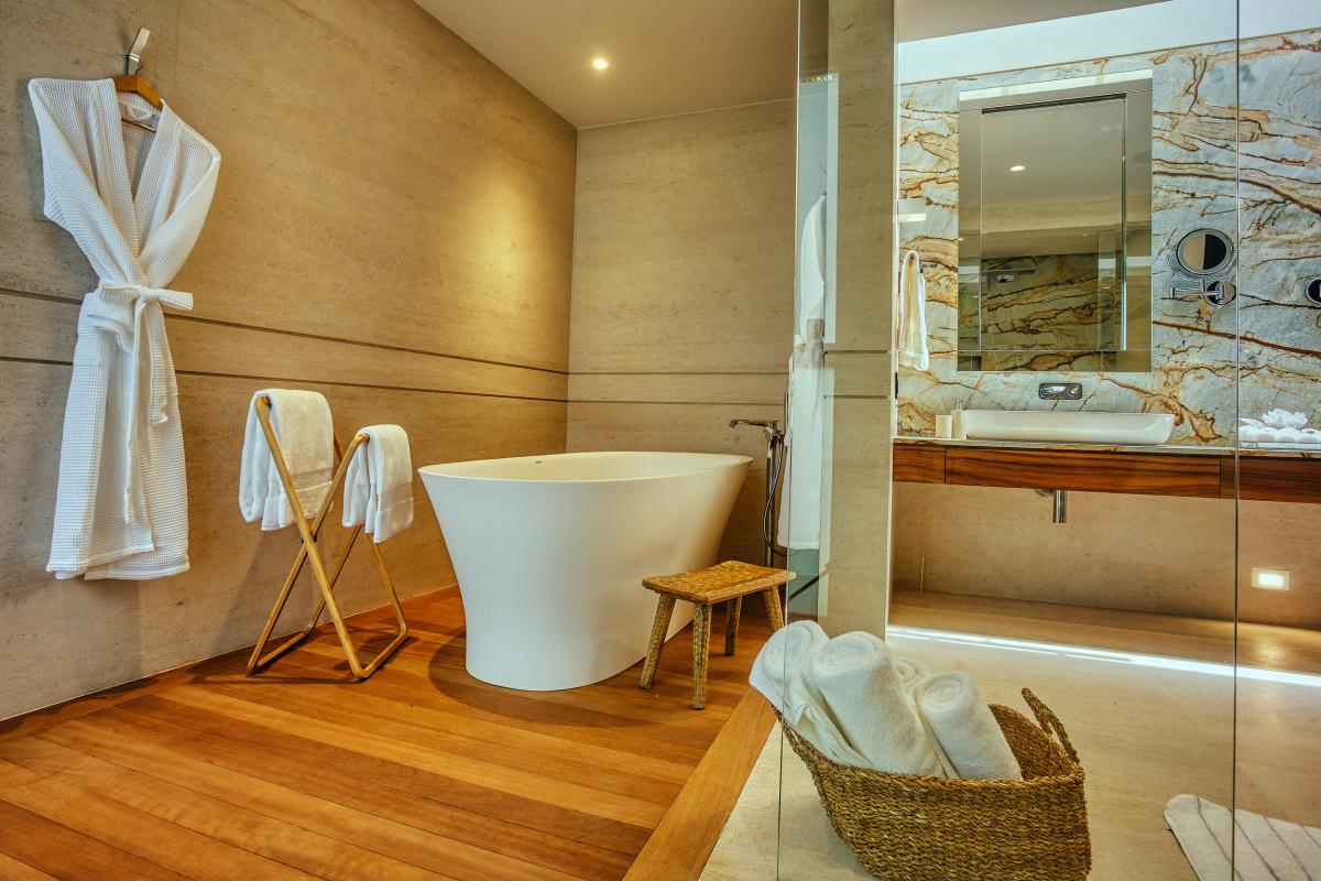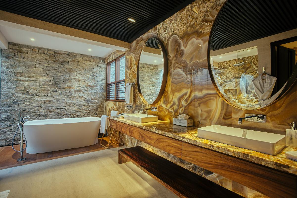 Bedroom 3: King bed, en suite bathroom with stand-alone shower and bathtub, dual vanity, walk-in closet, lounge area, private terrace with outdoor furniture