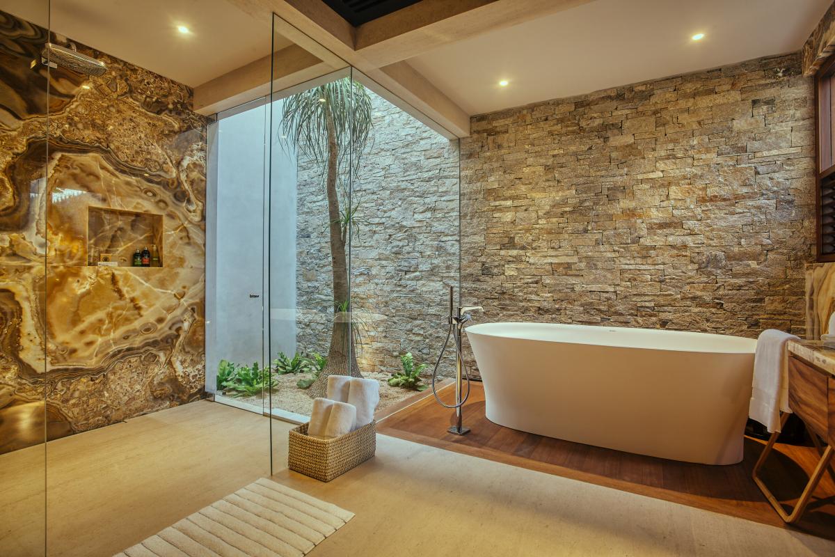 Outdoors at Casa del Oso boasts just as many amenities. There is a private spa with cold water plunge pool, alfresco dining palapa for 16, a stunning private infinity pool, and access to the beach.