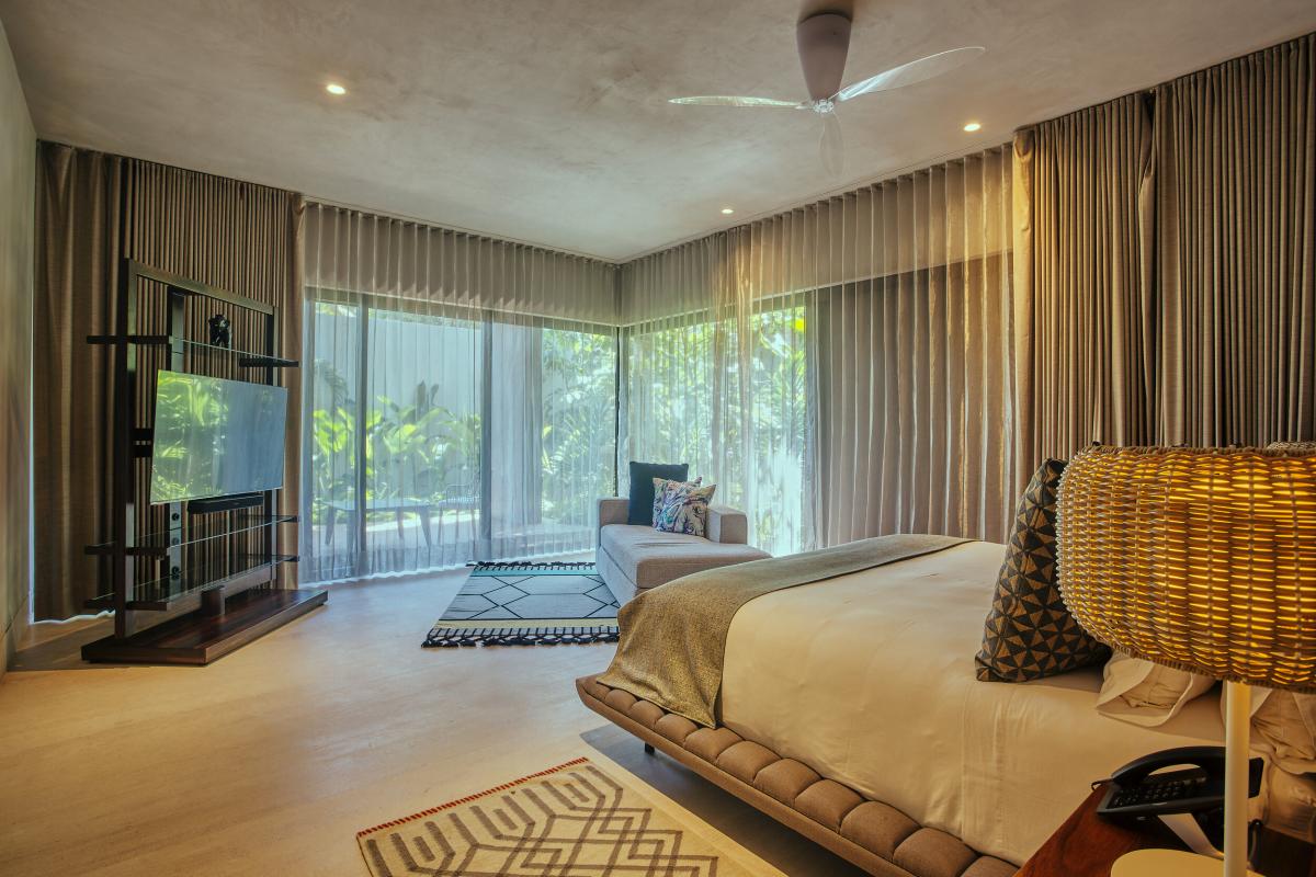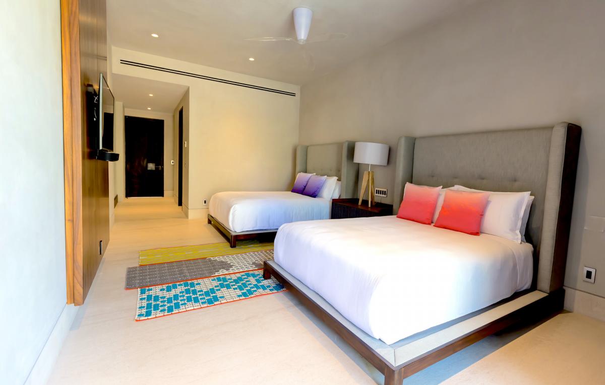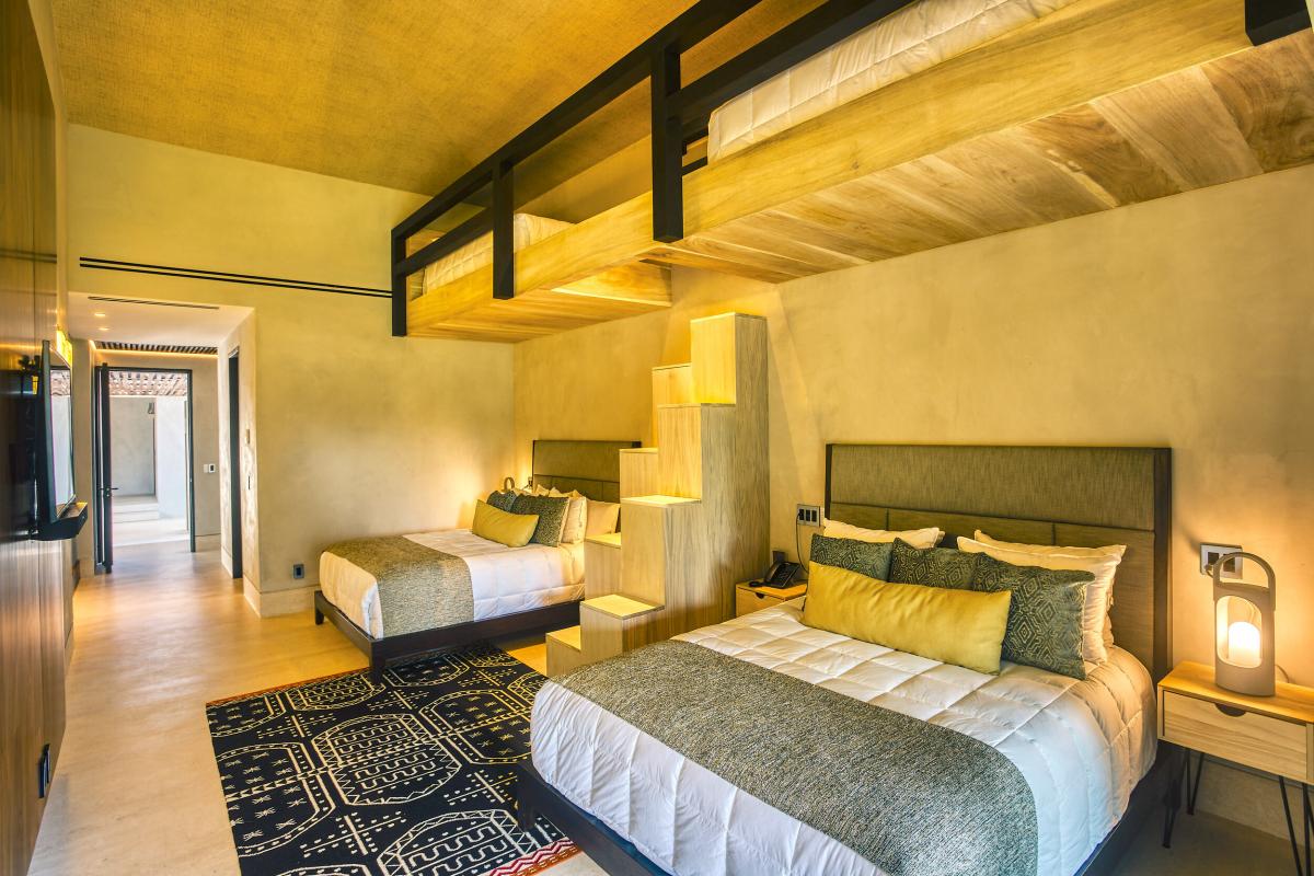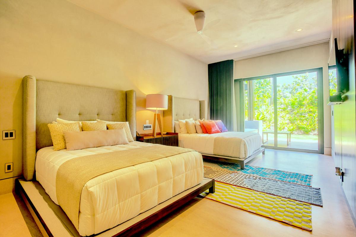Casa del Oso includes 10 spacious bedrooms. Two are Master suites. Four suites feature a King bed, two suites have a pair of Queen beds and two bedrooms are set up with twin over Queen bunk beds. All bedrooms are impecibly furnished and have an en suite bathroom, private terrace or balcony, AC, flat screen Apple TV, and Sonos sound bar.