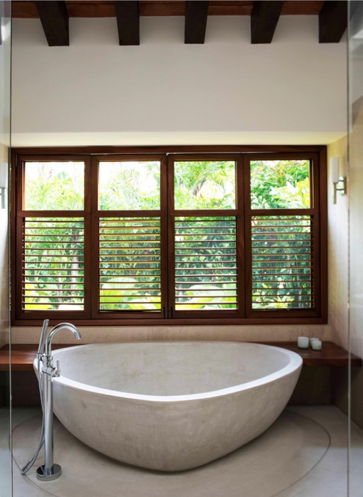 - Bedroom 7: King bed, en suite bathroom with shower and bathtub, TV, outdoor bathtub