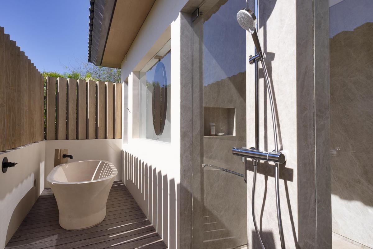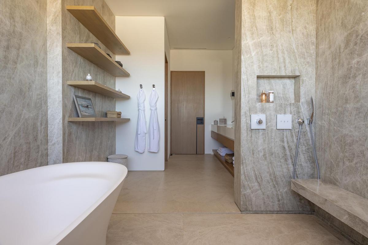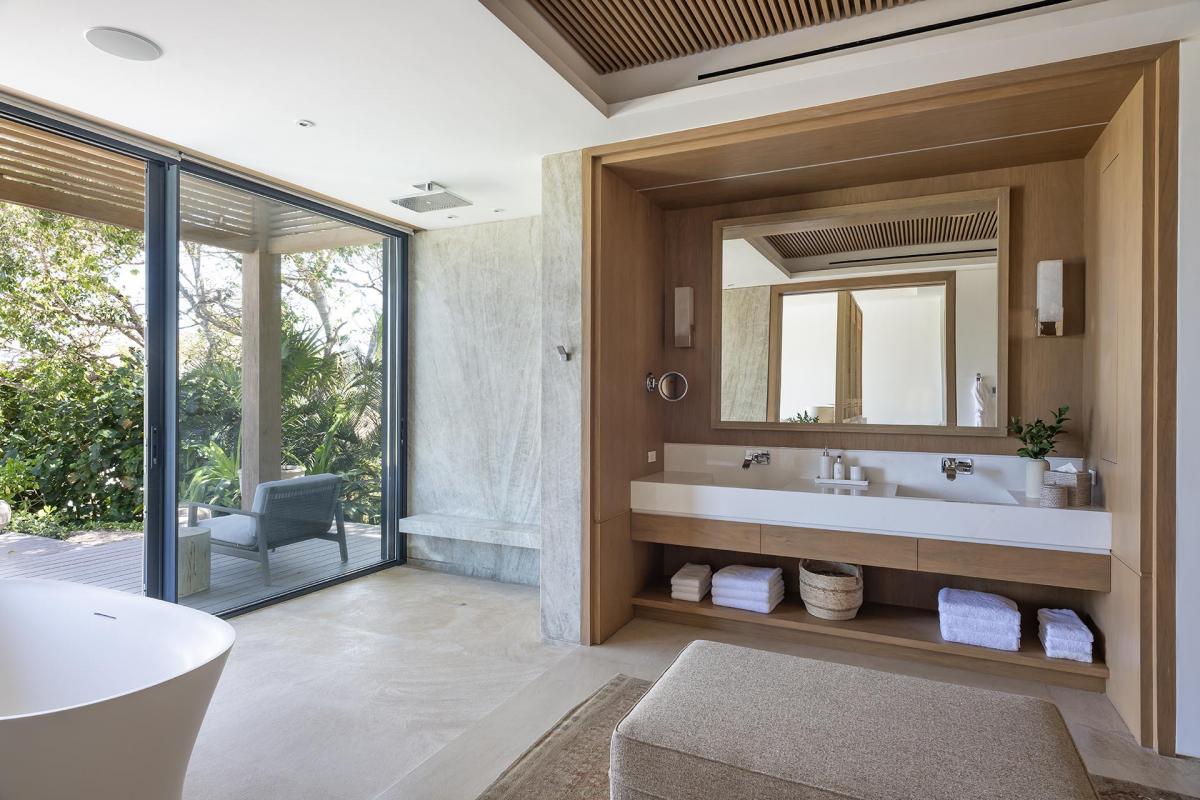 Bedroom 7: King bed, ensuite bathroom with stand-alone rain shower, outdoor shower, bathtub, dual vanity