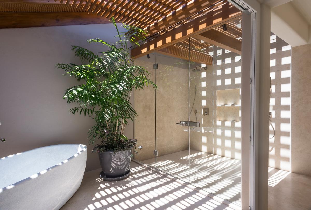 Primary Bedroom 2: King bed, ensuite bathroom with outdoor showers and bath