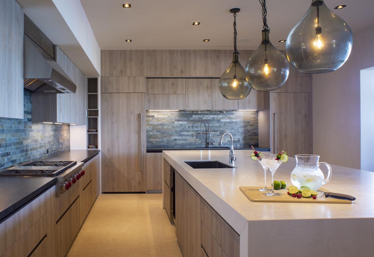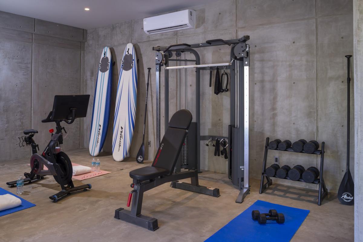 The private level is great but the heart and soul of Todo Bien is the social level. This is where memories are made. The views from everywhere are stunning. It is actually difficult to choose what will inevitably become your favorite vista. The game room is on the west side of the house. It has a pool table and outdoor ping pong table, along with a large sitting area dominated by another 82” smart TV. It looks directly onto the island situated in the pool that runs the length of the house. The island has 2 sitting areas, including one that features a fire pit overlooking the ocean. Below the island is the fitness facility which boasts free weights, a universal machine, a Peloton, Treadmill and Elliptical machines. In the pool is a sundeck with 4 chaise lounge chairs perfect for those that like to take in the sun and quickly cool off. The living/dining area is casually elegant and has both indoor and outdoor seating for meal times. The gourmet kitchen is a chef’s dream and our Chef, Chava, will delight you with his culinary skills. Adjacent to the living room area, on the east side of the house, is the Todo Bien bar. It comfortably seats 12 and once again you can enjoy another 82” smart TV to watch your favorite sporting event or show. On the backside of the Bar is our Pizza Grotto boasting a wood burning pizza oven, palm trees, a second fire pit and intimate seating highlighted by a candle wall that wraps back into the bar area creating a wonderfully romantic setting.