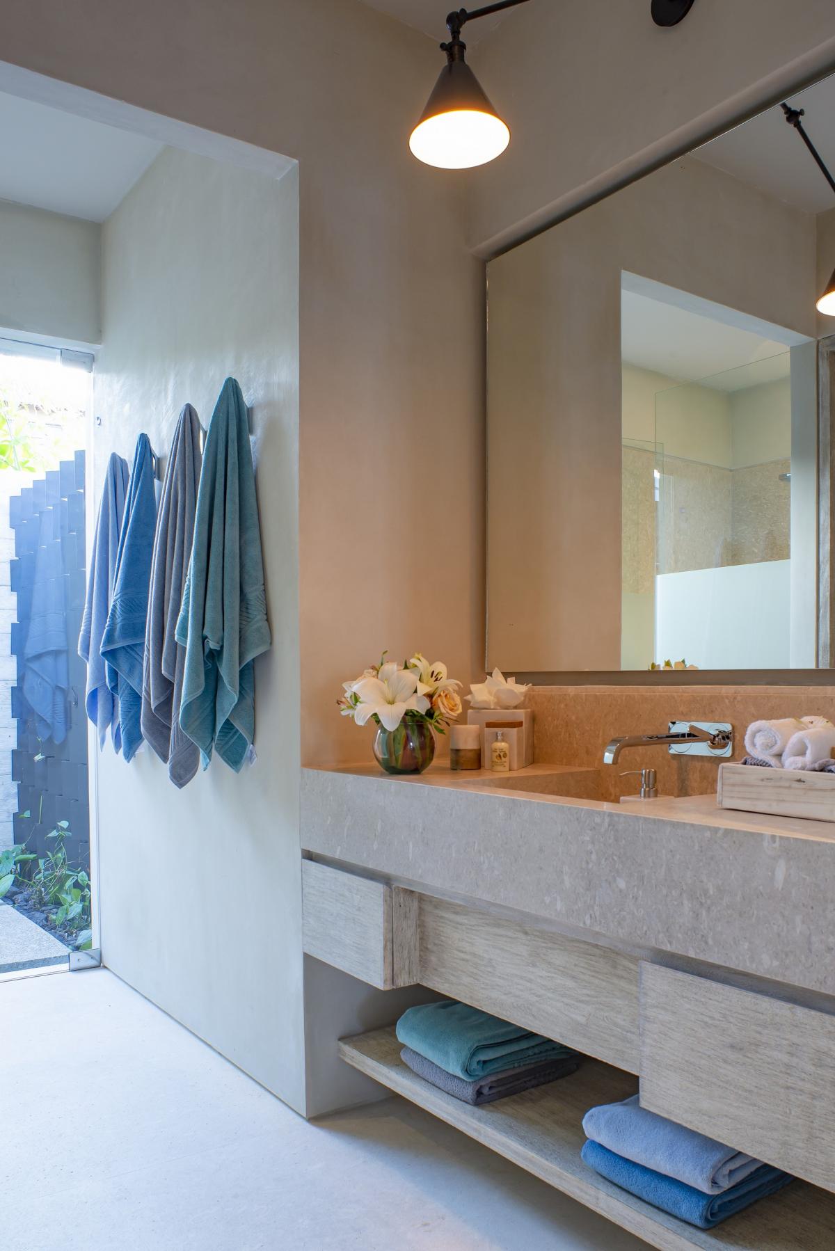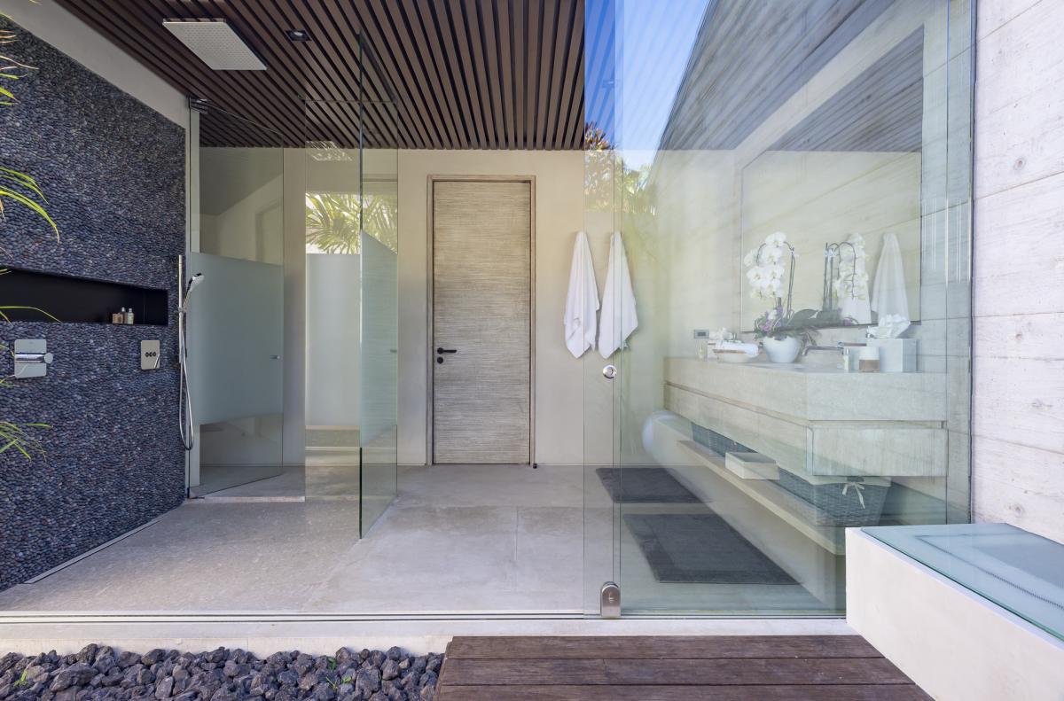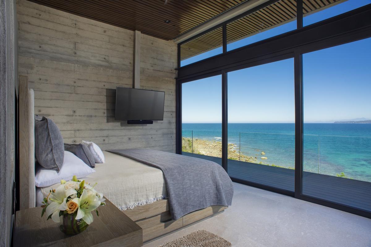 Bedroom 1: king bed with ocean views, ensuite bathroom with private outdoor garden shower/bath