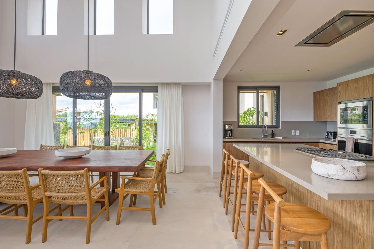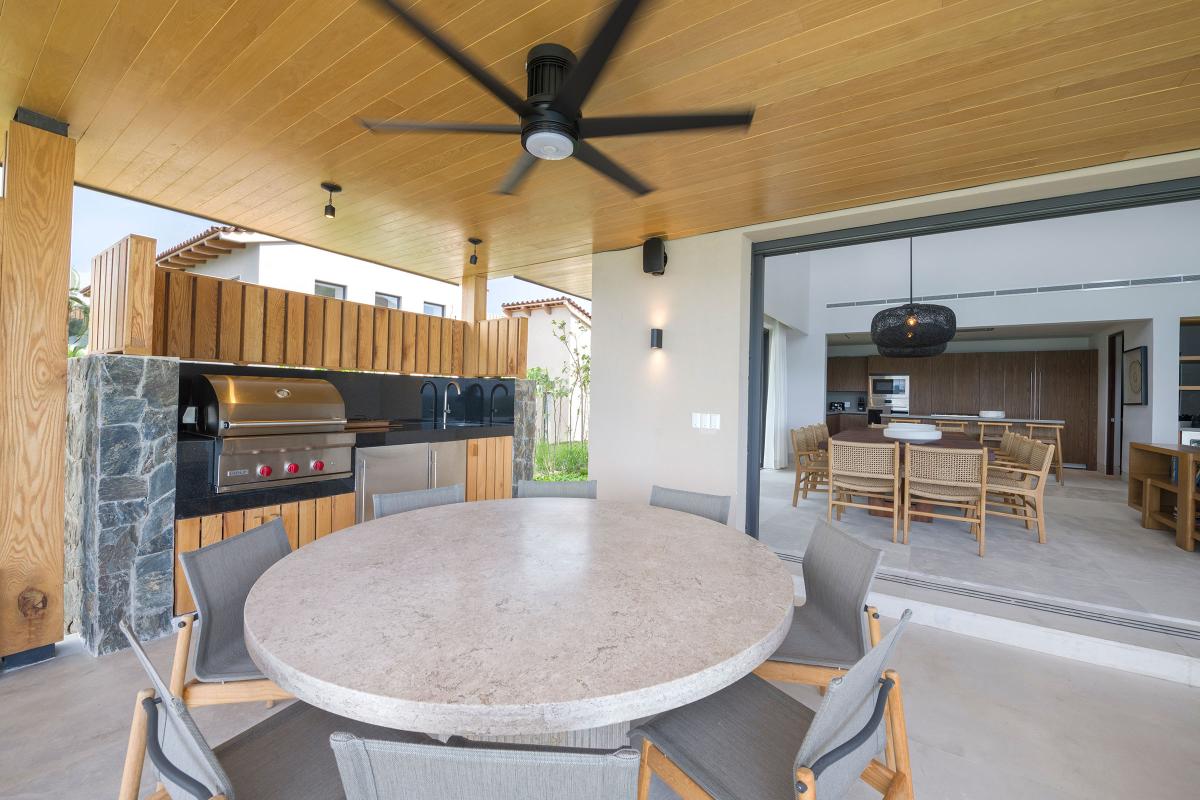 Expansive retracting doors and vaulted ceilings bring the outside in, where an open-living floor plan awaits. A fully equipped gourmet kitchen provides for family or group meals where memories of your Punta Mita vacation will be made. Love outdoor cooking while taking in beautiful ocean views and sunsets instead? The outdoor kitchen with alfresco dining provides an alternative option. As your day whines down, relax in one of the four bedrooms, each offering comforable bedding, TVs, and ensuite bathrooms.