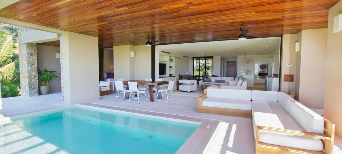 Condo Aquila enjoys a prime location along the 18th hole of Jack Nicklaus Signature Bahía Golf Course. This private villa offers a sophisticated blend of style and comfort within her three bedroom dwelling. Guests enjoy a substantial private terrace with plunge pool and outdoor shower. Guests also enjoy a premier membership including all the Punta Mita development amenities - two golf courses, four beach clubs, gym, and tennis center.