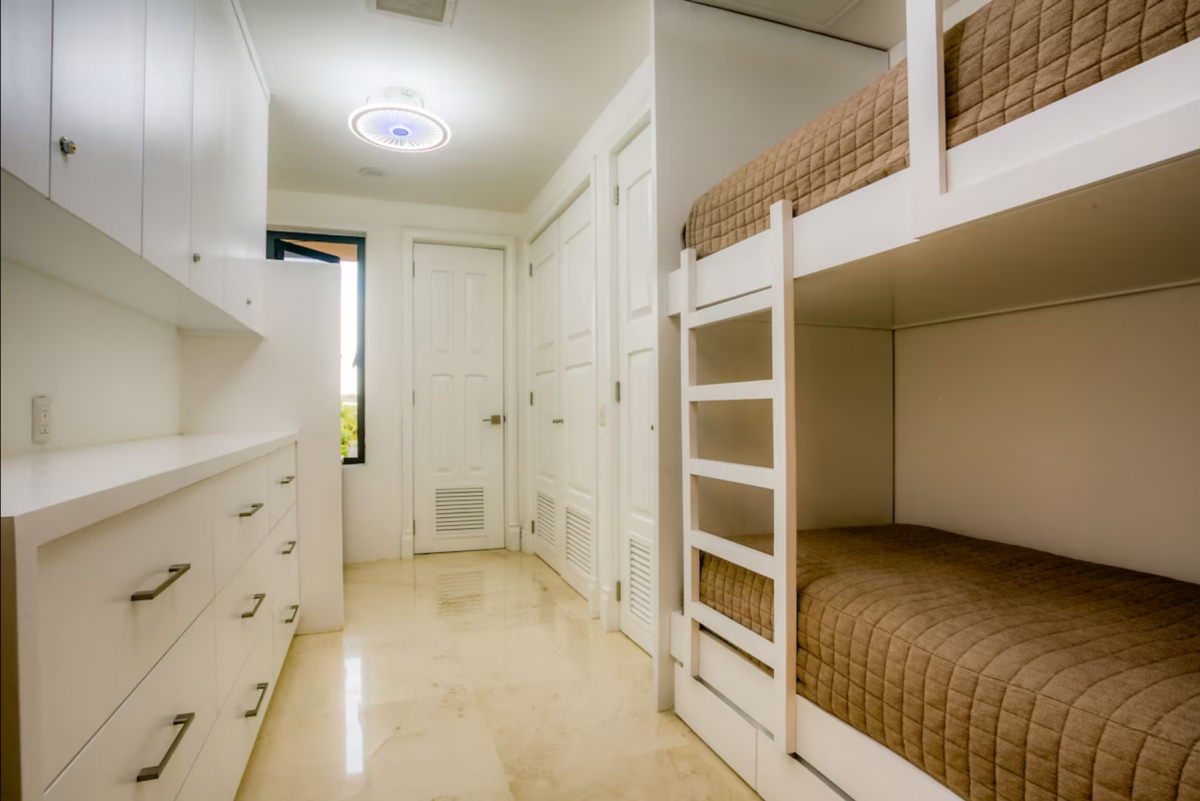 Bedroom 4: This additional room is equipped with a twin bunk bed, air conditioning, and an ensuite bathroom.