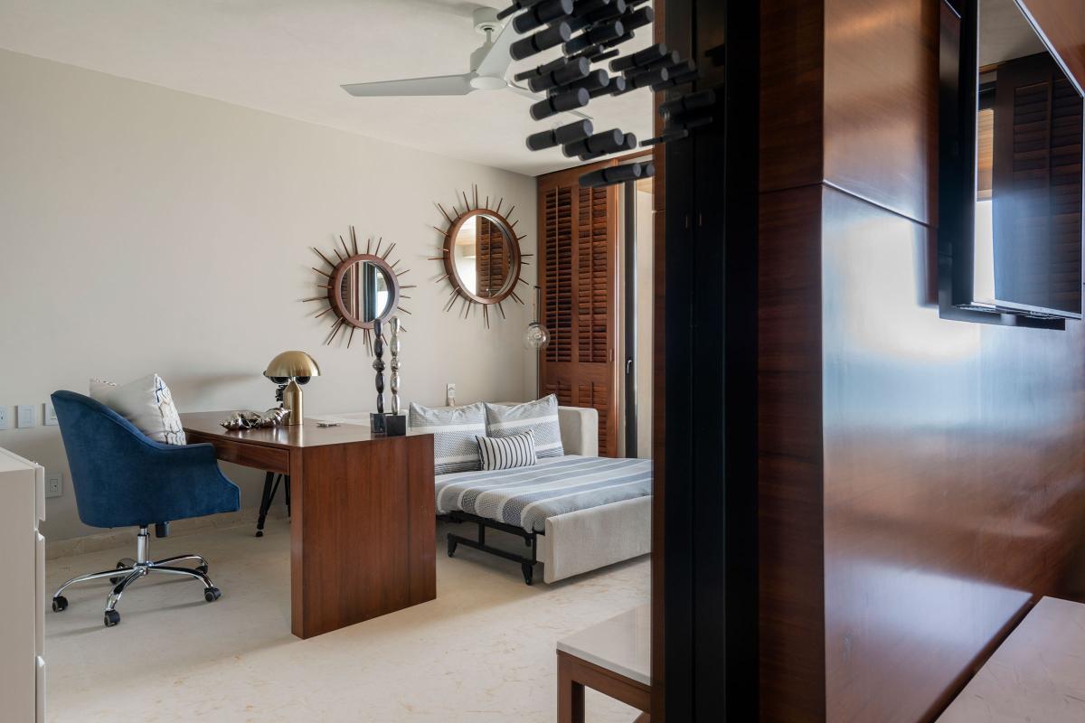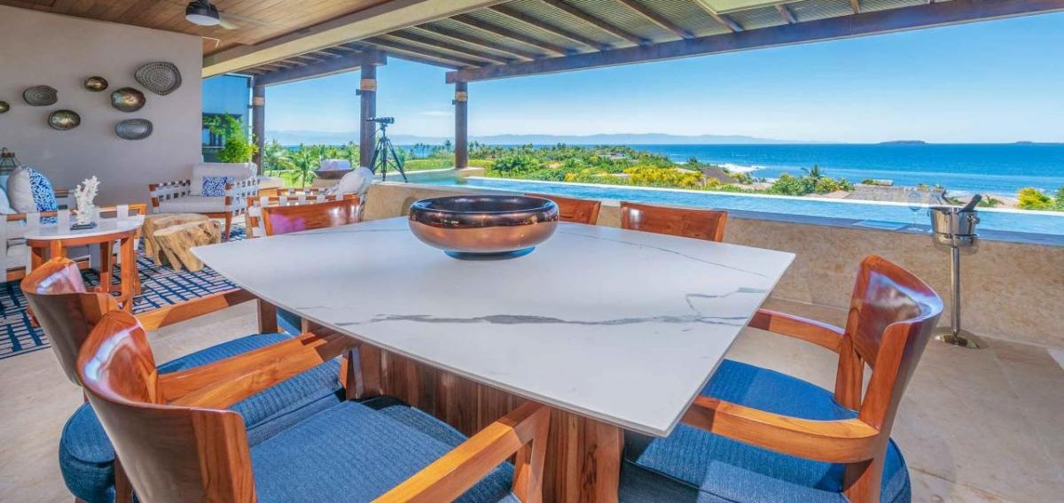 Casa Escrita is a stunning condominium rental in Punta Mita on the third floor at Tau. The furnishings at Casa Escrita blend sophistication and luxury for guests and provide unparalleled views of the Bay of Banderas and Las Marietas Islands. There are many features and amenities. The indoor amenities include an 85" TV with surround sound in the living room, high-speed WIFI, a fully equipped gourmet kitchen, and more. Outside, there is a private pool, a built-in BBQ, a dining and sitting area, a golf cart, and more for guests to enjoy. Casa Escrita is the perfect place to enjoy all Punta Mita resorts have to offer.