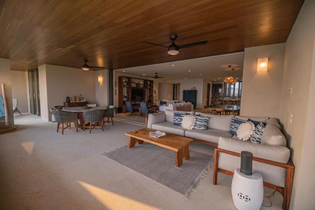 Condo Kumar, the Punta Mita resort Mexico, has a floor plan that spans 3,466 ft and it ranks among the most spacious options in the Punta Mita exclusive community. It ensures guests have a place to enjoy a luxury vacation home. There is a fully equipped kitchen, a large dining room table, and a TV lounge to enjoy time together indoors. Guests of Condo Kumar can also enjoy access to all the exclusive beach clubs and golf courses within the Punta Mita development.