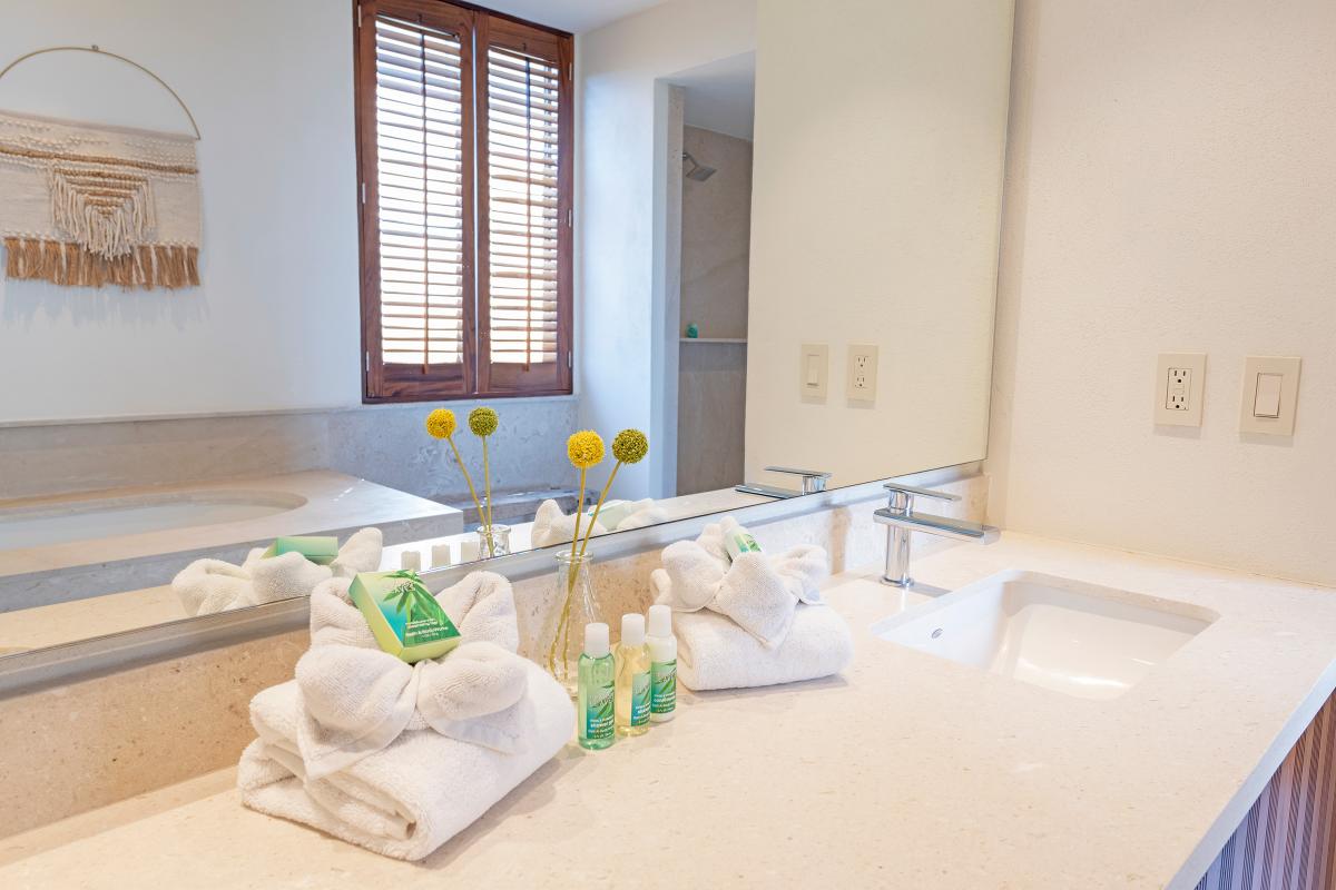 Condo Teresa is located inside the gates of Punta Mita, next to the 18th hole of the Jack Nicklaus Signature Bahía Golf Course. Condo Teresa has incredible outside features such as an outdoor shower and a private terrace with a plunge pool to make your stay as luxurious as possible. When inside Condo Teresa, there are two gorgeous master bedrooms, both with ensuite and amazing ocean views. The third bedroom has two queen beds and a set of bunk beds, with a great view of the ocean.