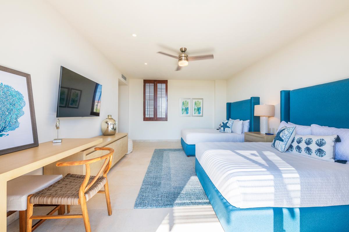 Bedroom 3: Bedroom 3 is equipped with two queen-sized beds, a ceiling fan, and air conditioning. There is also an ensuite bathroom with a rain shower.