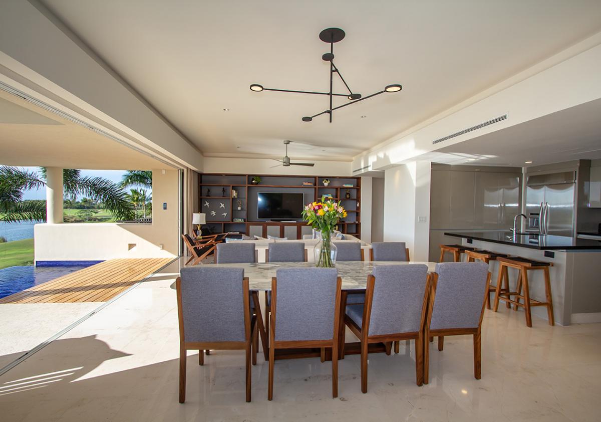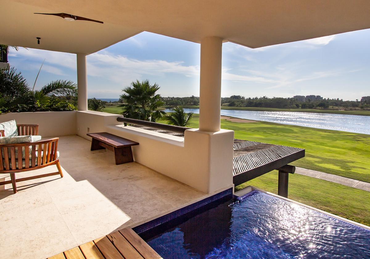 El Encanto Condo 602 is in the El Encanto residential community that is located in Punta Mita. This condo is on the first level and gives amazing views of the fairway of the golf course and colorful sunsets to the west. El Encanto Condo 602 has a large terrace that wraps around three sides of the condo, giving guests the opportunity to enjoy the outdoors from the comfort of their condo. El Encanto Condo 602 is a luxurious condo sitting in front of the 12th hole of the Bahia Golf Course. The outside provides a private heated infinity-edge soaking pool, the perfect place to relax.