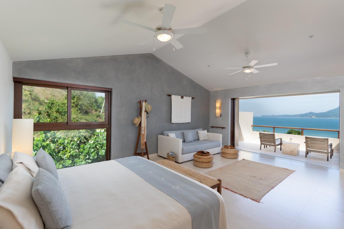 Bedroom 6: King bed, ensuite bathroom with stand-alone rain shower, safe, private balcony, ocean view, TV