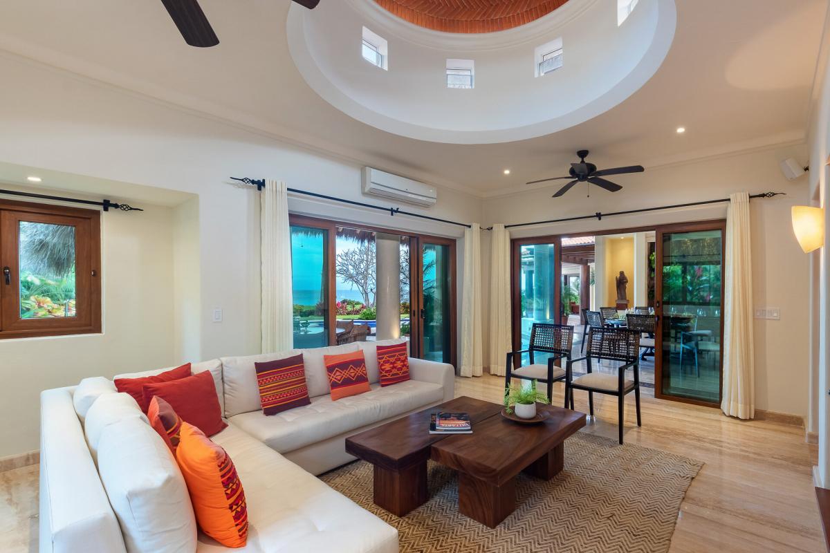 Unplugged and an escape to simplicity wrapped in luxury, is the best way to refer to this truly enchanting villa. Beautifully and securely situated in the Mexican Rivera known as the Punta Mita resort, La Villa Bella is located on the Jack Nicklaus signature golf course of Pacifico, adjacent to the Four Seasons, overlooking the expansive Bahia de Banderas and Pacific Ocean. Tastefully grand, La Villa Bella will indulge you with magnificent views of the ocean and the Marieta Islands, and the perfect fusion of tropical and traditional Mexican architecture, in an exquisite setting of lush natural beauty. All this comes with the convenience of air conditioned suites, wireless internet, and high end stereo compatible with your CDs, iPod, and iPhone. Life is good at La Villa Bella. Relax in the ultra calm and soothing indoor and outdoor oversized living spaces throughout this magnificent villa. Enjoy the 4 exquisitely designed suites, 5 bathrooms, a relaxing indoor/outdoor living room with adjoining wet bar, family room, dining room, breakfast room, separate palapa for dining, gourmet kitchen, and a heated pool overlooking the azul green Pacific and distant Puerto Vallarta skyline and Sierra Madre mountains. The highest level of service and amenities are the final ingredients to this wonderful retreat. The chef will cater to your every culinary desire and the concierge will accommodate your every need to make sure your visit is full of leisure, comfort, and adventure. There are a variety of restaurants, services, and activities such as villa massages, whale watching, surfing, kayaking, sailing, fishing, horseback riding, and jungle adventures that will introduce you to the lifestyle and natural wonders of this tropical paradise. It is easy to do it all and experience the local color and flavor of nearby authentic Mexican villages or simply improve your skills at the art of doing nothing. Whichever you choose, you will undoubtedly create memories for a lifetime at La Villa Bella. This Punta Mita villa is great for families!