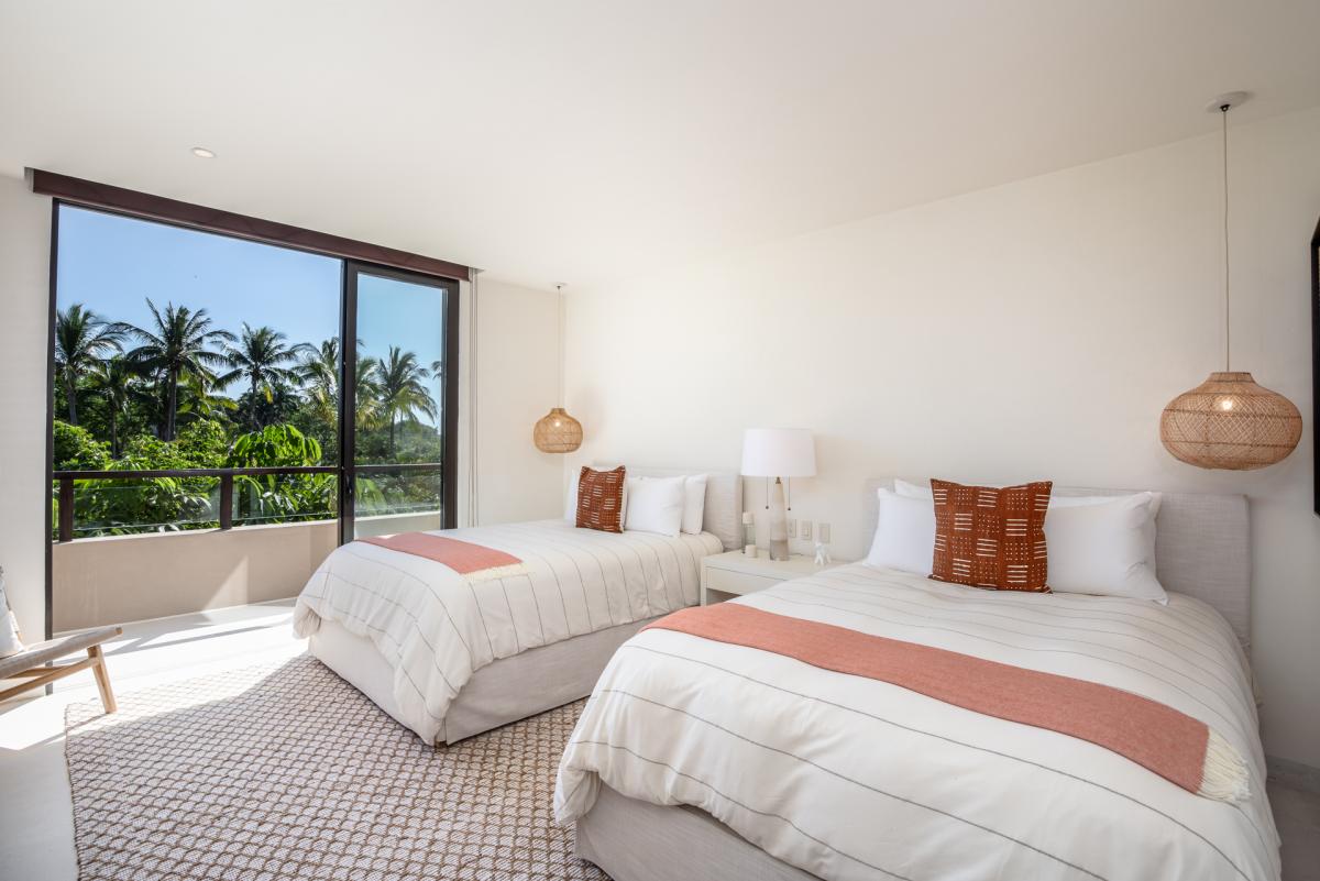 Las Marietas D101 is a brand new 3 bedroom condo with pool, outdoor daybed and outdoor dining for six people. The first floor condo enjoys amazing ocean views and has the outlook of a ground floor condo. With tasteful interior design and furnishings making this condo the jewel of the Las Marietas. Fully equipped open plan kitchen and living room with every convenience you require such as microwave, wine fridge, ice maker, washer dryer, outdoor Grill, Sonos sound system, Apple TV and Netflix.