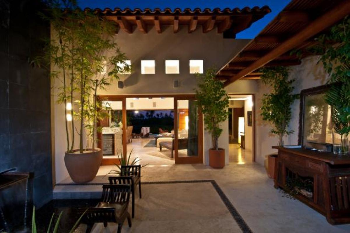 Las Palmas embodies the open-air lifestyle of the Punta Mita resort. The single level Punta Mita rental features a spacious combination living/dining room that opens onto a partially covered expansive terrace, with outdoor dining area, wet bar and Viking grill, and a private pool. Just off the large central patio, which showcases a stunning water feature, volcanic stone backdrop and pebble-carpet detailing, is a gourmet kitchen and full laundry. Las Palmas features upgraded landscaping, with abundant palms providing additional privacy.