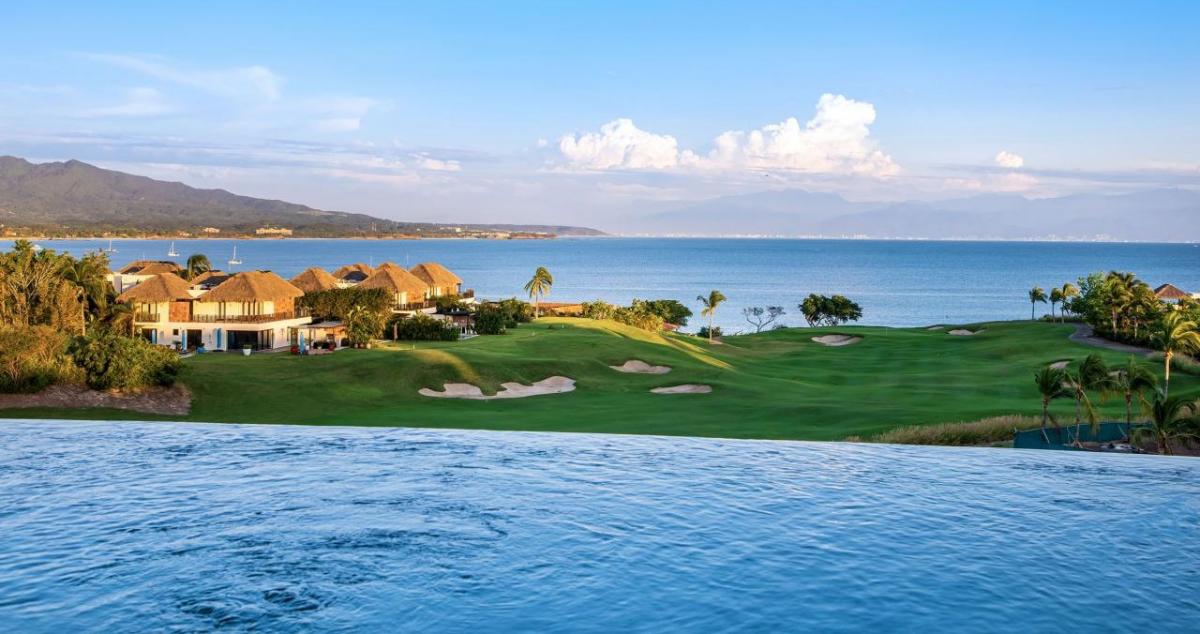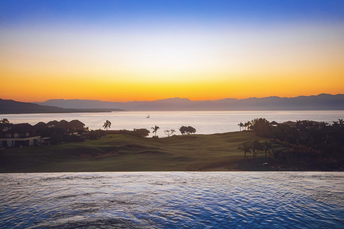 Penthouse Prima Vista is an extraordinary Punta Mita vacation rental at Tau. From Prima Vista, guests can view the mesmerizing dance of waves on one side and beautifully manicured fairways on the other. Prima Vista has a premium location on the top floor with spectacular views that go from the Bay of Banderas and the Marietas Islands to the Pacific Ocean and the 18th green of the Jack Nicklaus Bahia Course. Guests do not have to leave the condo to watch stunning sunrises and sunsets; watch them from the outdoor terrace in the beautiful infinity pool, dining table, or comfortable outdoor furniture. Penthouse Prima Vista has over 6,000 square feet of Indoor/Outdoor living space to give guests and groups plenty of space to spread out.