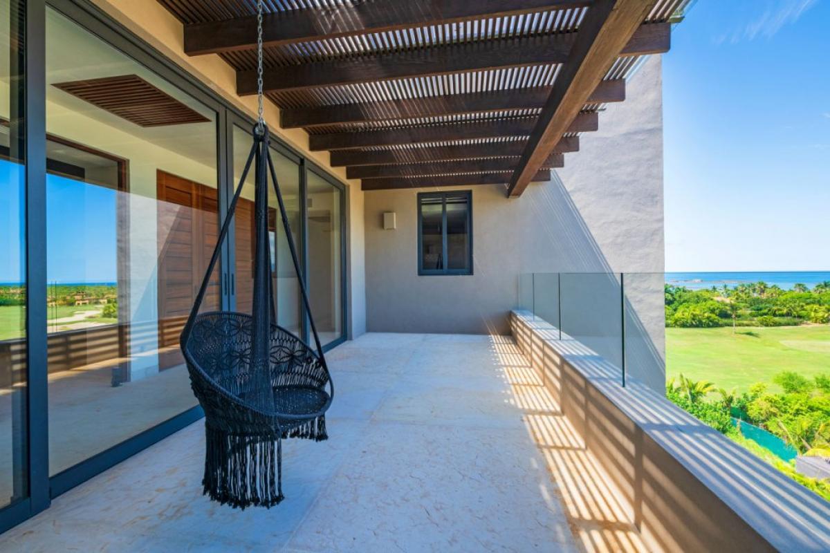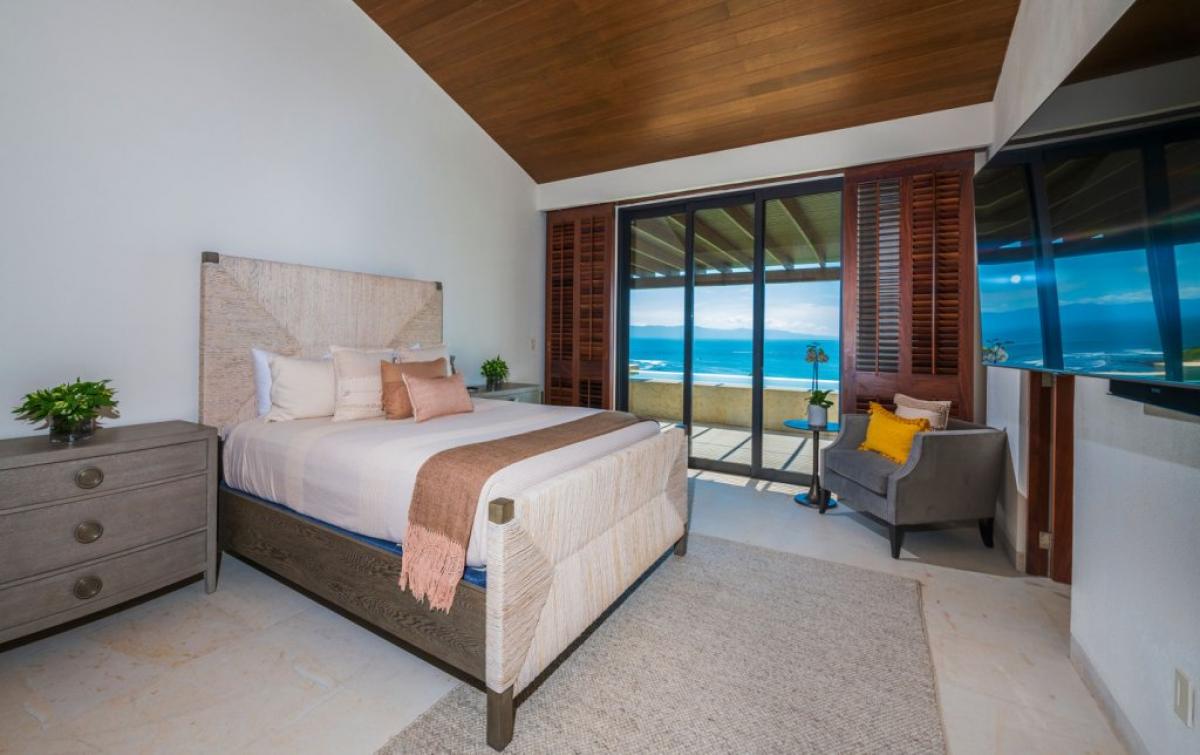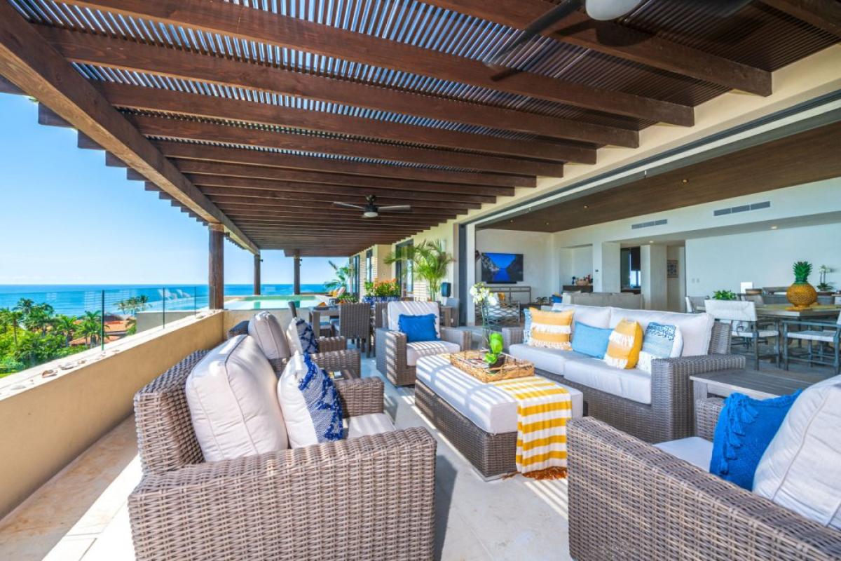 PH Vista Ballena is a spectacular top-floor penthouse in Punta Mita, offering an extraordinary blend of coastal luxury and golf course elegance. With sweeping views that stretch from the Pacific Ocean and Marietas Islands to the 18th green of the Jack Nicklaus Bahia Course, this residence captures the essence of refined tropical living. Surfers will appreciate the direct view of the Punta Mita Surf Break, while early risers and sunset seekers can savor the changing sky from the comfort of the private terrace, complete with an infinity pool, outdoor dining area, and plush lounge seating.