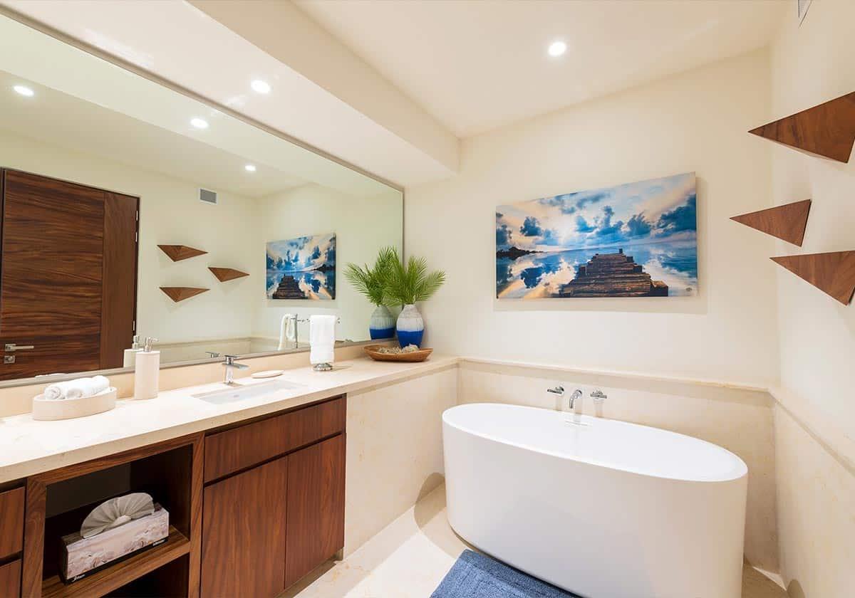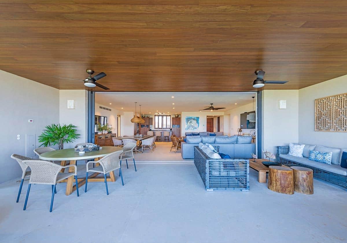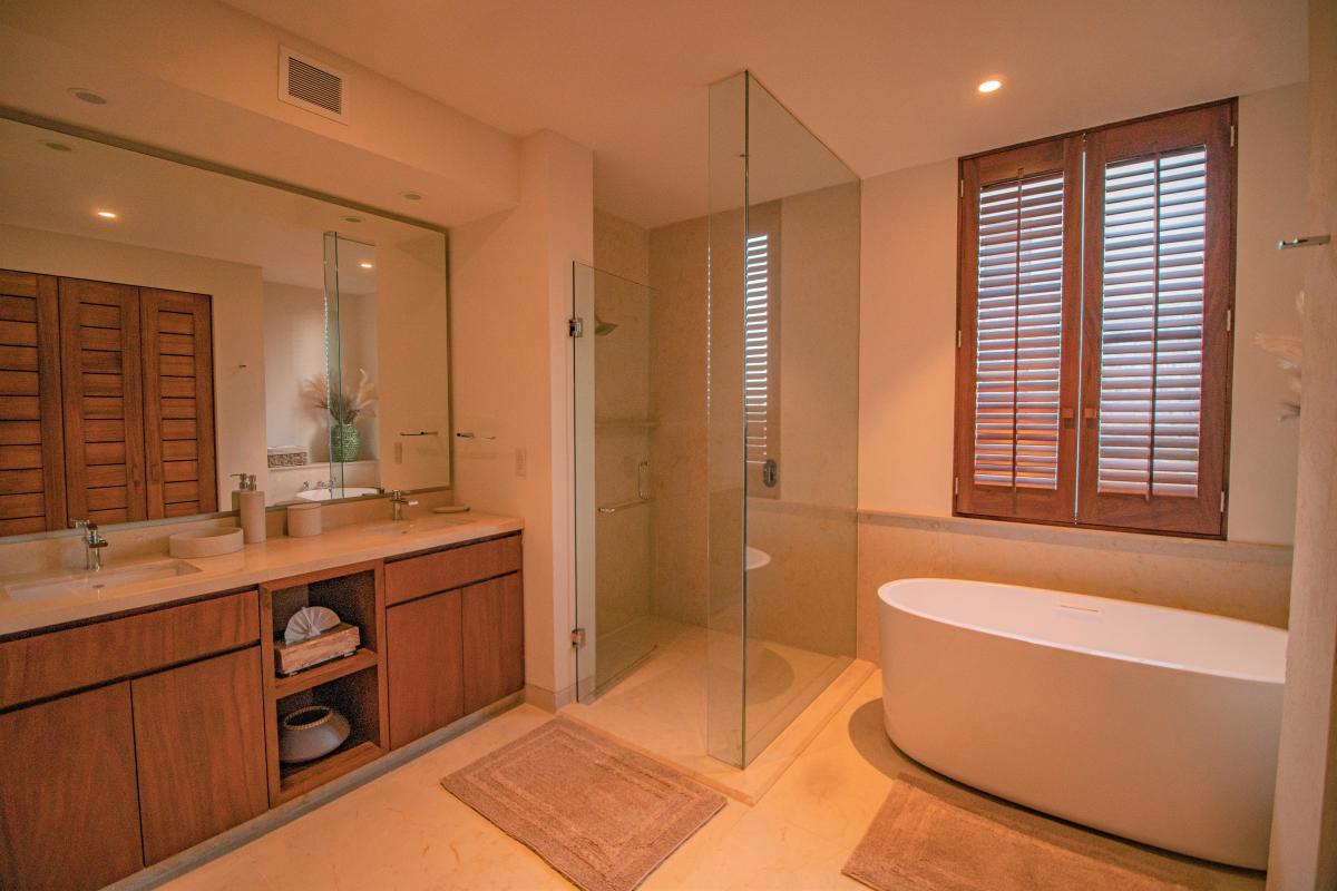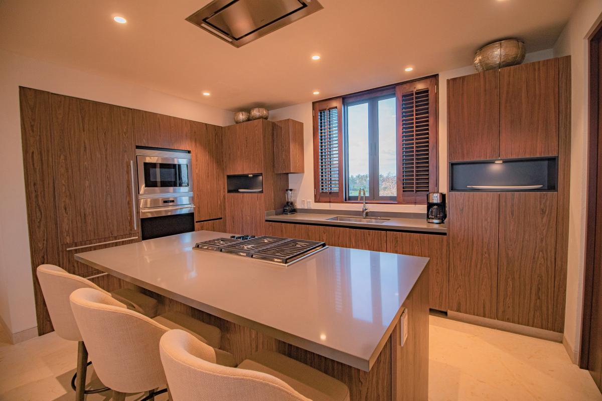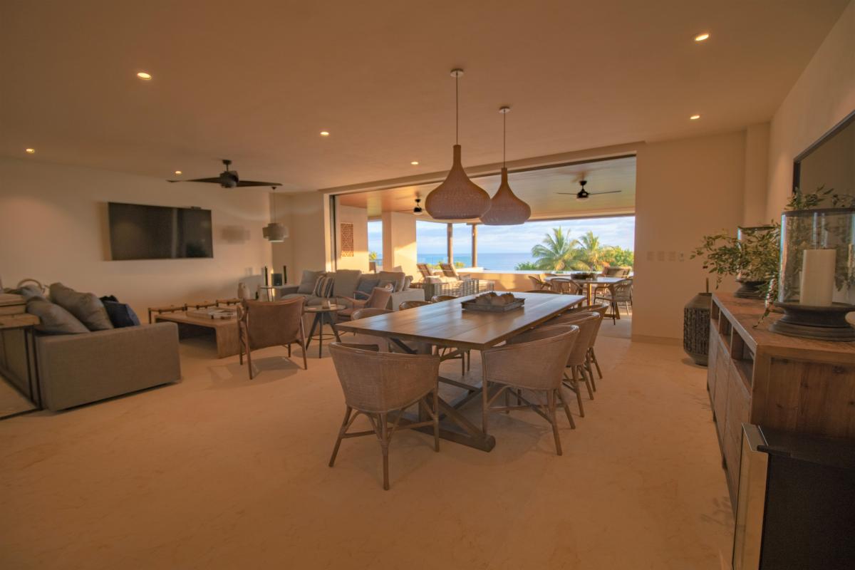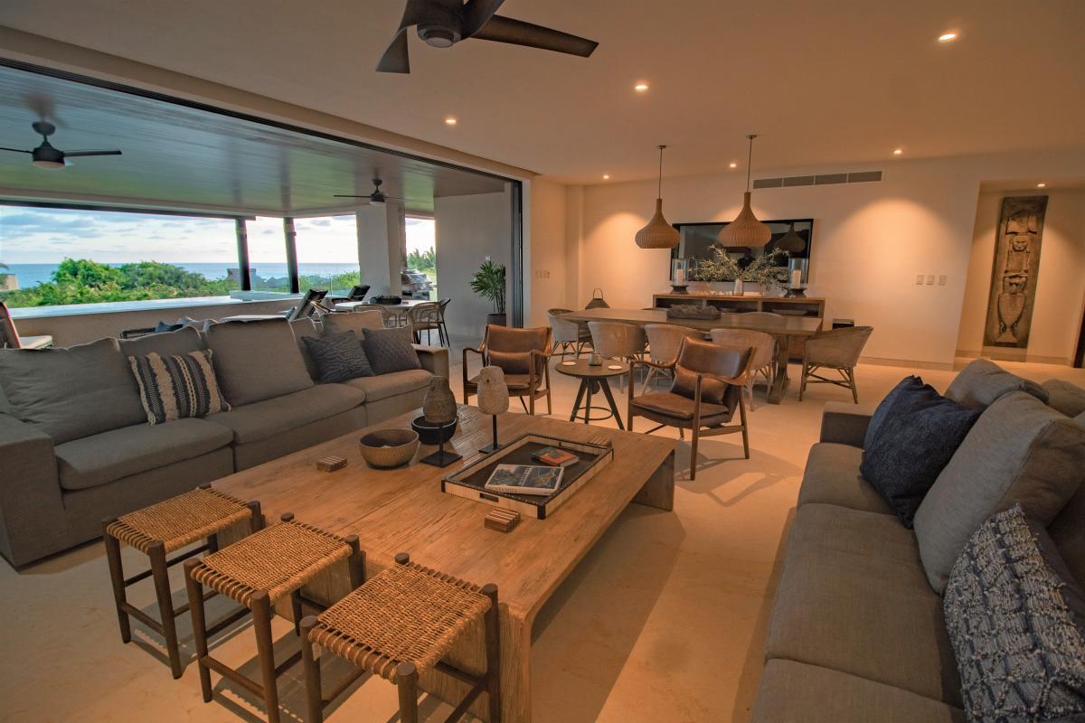 This spacious Punta Mita retreat offers an airy open-plan design, upscale kitchen, and serene, designer-furnished interiors that blend seamlessly with the outdoors. Each bedroom of Tau 211 features calming neutral tones, private terraces with panoramic ocean and golf course views, and hotel-quality amenities including luxury linens, toiletries, and personal safes. Daily housekeeping and optional chef services add a layer of comfort to this effortlessly elegant retreat.