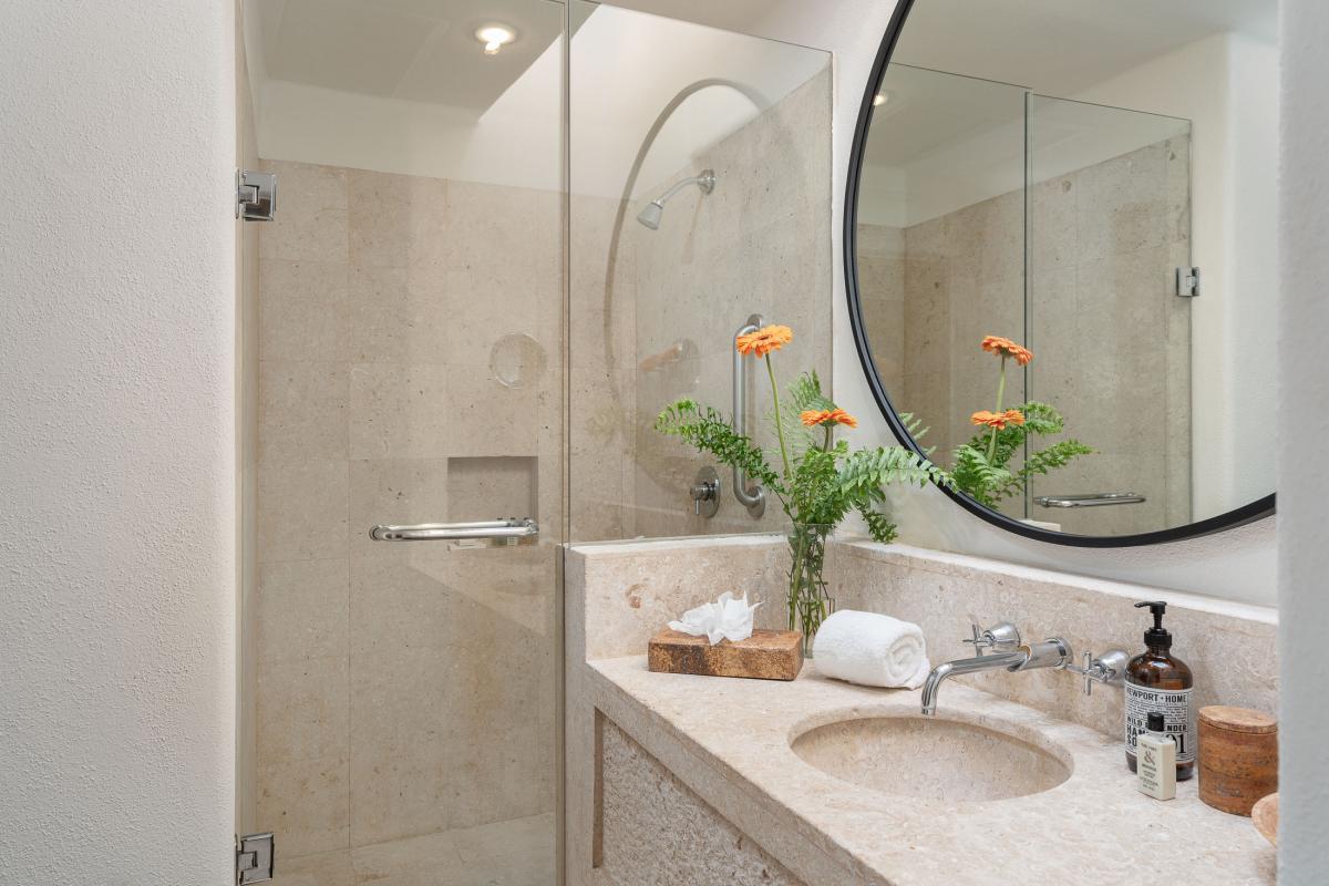 • Bedroom 2: Queen size bed with additional queen daybed. Ensuite bathroom with stand-alone shower and bathtub. Terrace with ocean views.
