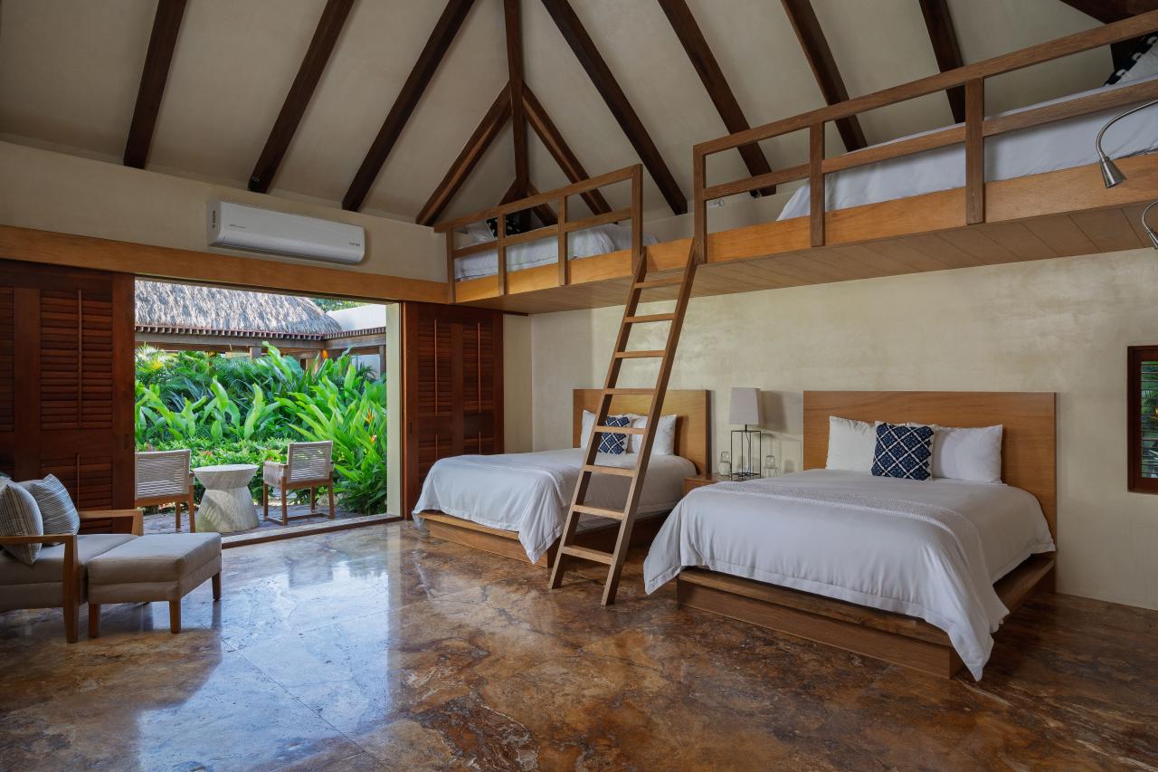 Villa el Jardin has four bedrooms, and each has an en-suite bathroom. The primary bedroom has a king-sized bed, a private terrace, and a luxurious bathroom with a soaking tub and a rain shower. The outdoor areas of Villa el Jardin are just as impressive as the inside areas. Guests can enjoy a relaxing pool overlooking the ocean, dine on the expansive palapa, or relax on the rooftop area. This Punta Mita villa also has landscaped gardens that add to the villa's serene and tropical ambiance.