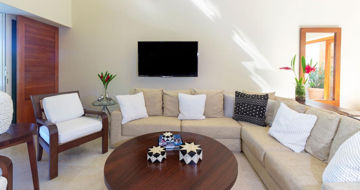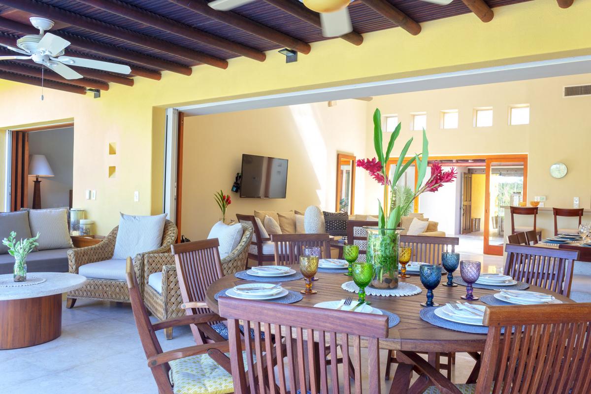 The single level makes this Punta Mita villa easily accessible to those of all ages and abilities. A living/dining room is just adjacent to the fully equipped gourmet kitchen and laundry room. Just outside, guests will find a partially covered terrace with a private plunge pool. Guests at Villa Frida will also enjoy a Premier Golf Membership and have access to a 6 seater golf cart housed within her enclosed garage (with extra space for a large luxury vehicle).