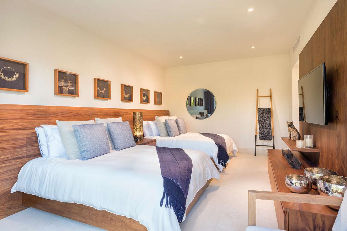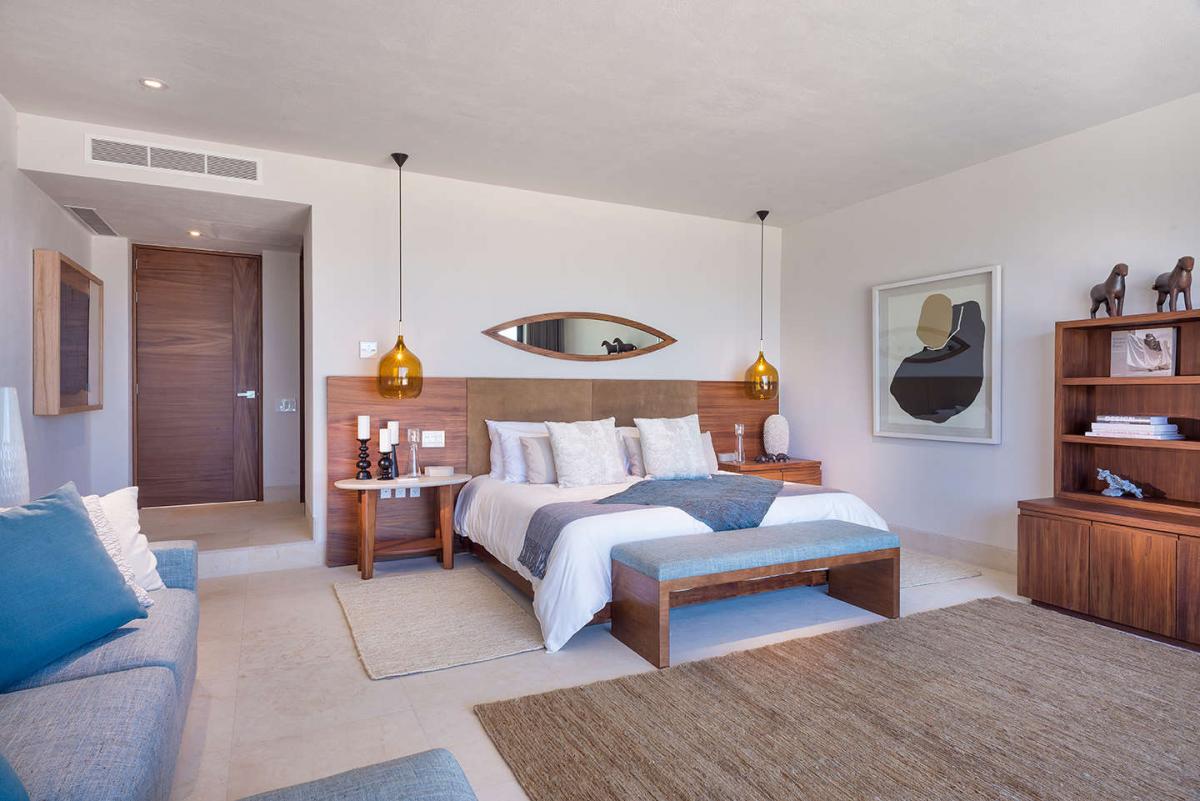 Primary Bedrooms: King size bed, small living room area, ocean view, direct pool and terrace access, 60 inch smart TV, apple TV, safe, en-suite bathroom