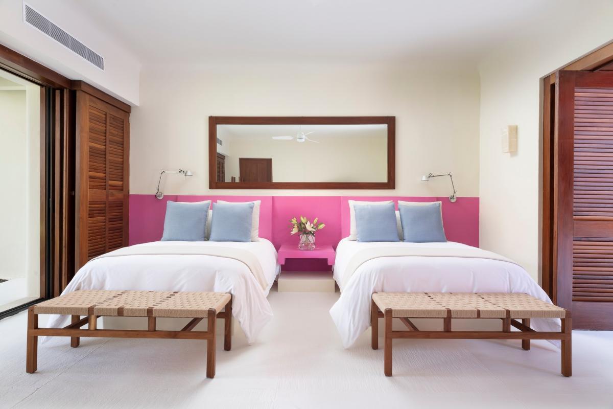 Cabanas Rooms A and B: Located at the villa's main entrance, the charming cabanas offer the option to increase your occupancy to 7 bedrooms. Two rooms with two twin-size beds or optional set up to One King Size Bed. The suite features an in-room minibar, Nespresso® Coffee maker, television and Apple TV, and private baths with shower, vanity makeup/shaving mirror, Hairdryer, Soft terry cloth bathrobes, L’Occitane signature toiletries, and more.