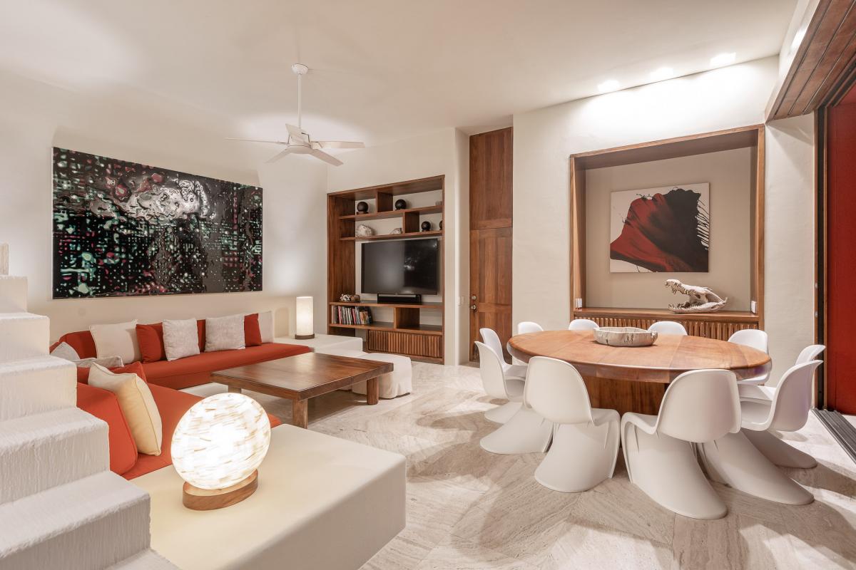 Villa Pacifica is fully staffed with a house manager and an on site housekeeper, chef and butler for your Punta Mita vacation. From the moment you arrive at Villa Pacifica, any stresses that you may have brought with you will instantly melt away. Friendly, attentive villa staff will greet you with freshly made margaritas and whisk away your luggage to your room. Guests enter the compound through a rear garden featuring a half moon pond, palm trees and an expansive grass area. From this rear garden you walk through an entrance and down a beautiful travertine walkway. On the right is a huge royal palm courtyard that looks through the main living area to the ocean. You will be guided directly into Villa Pacifica's great room. This gorgeous open living and entertaining area has multiple seating and dining areas and overlooks the pool and ocean. This vista will tell you that your Punta Mita vacation has officially begun!
