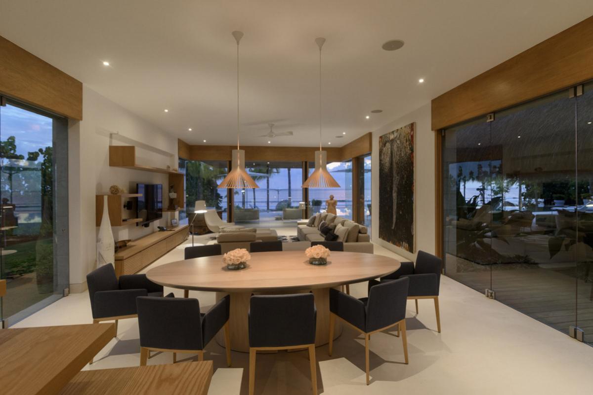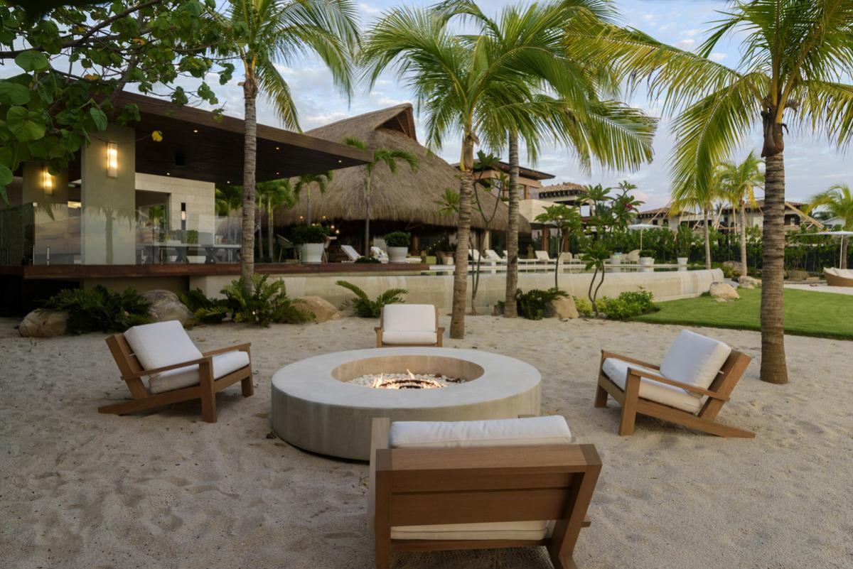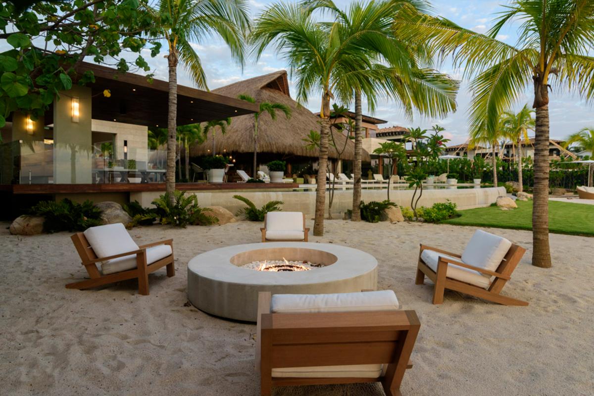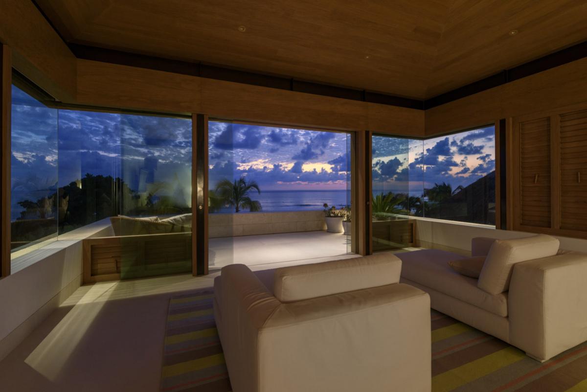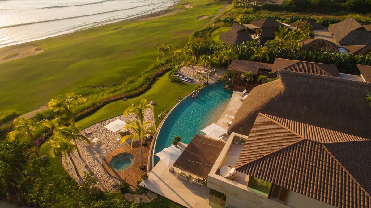 The living areas seamlessly flow between indoor comforts and the al fresco amenities like the pool, beach, fairway, and ocean.
