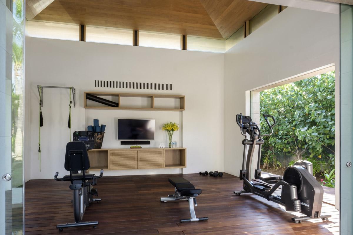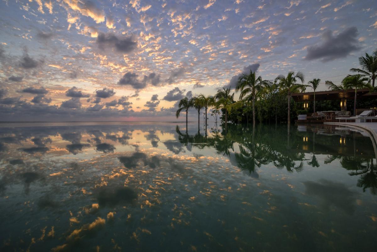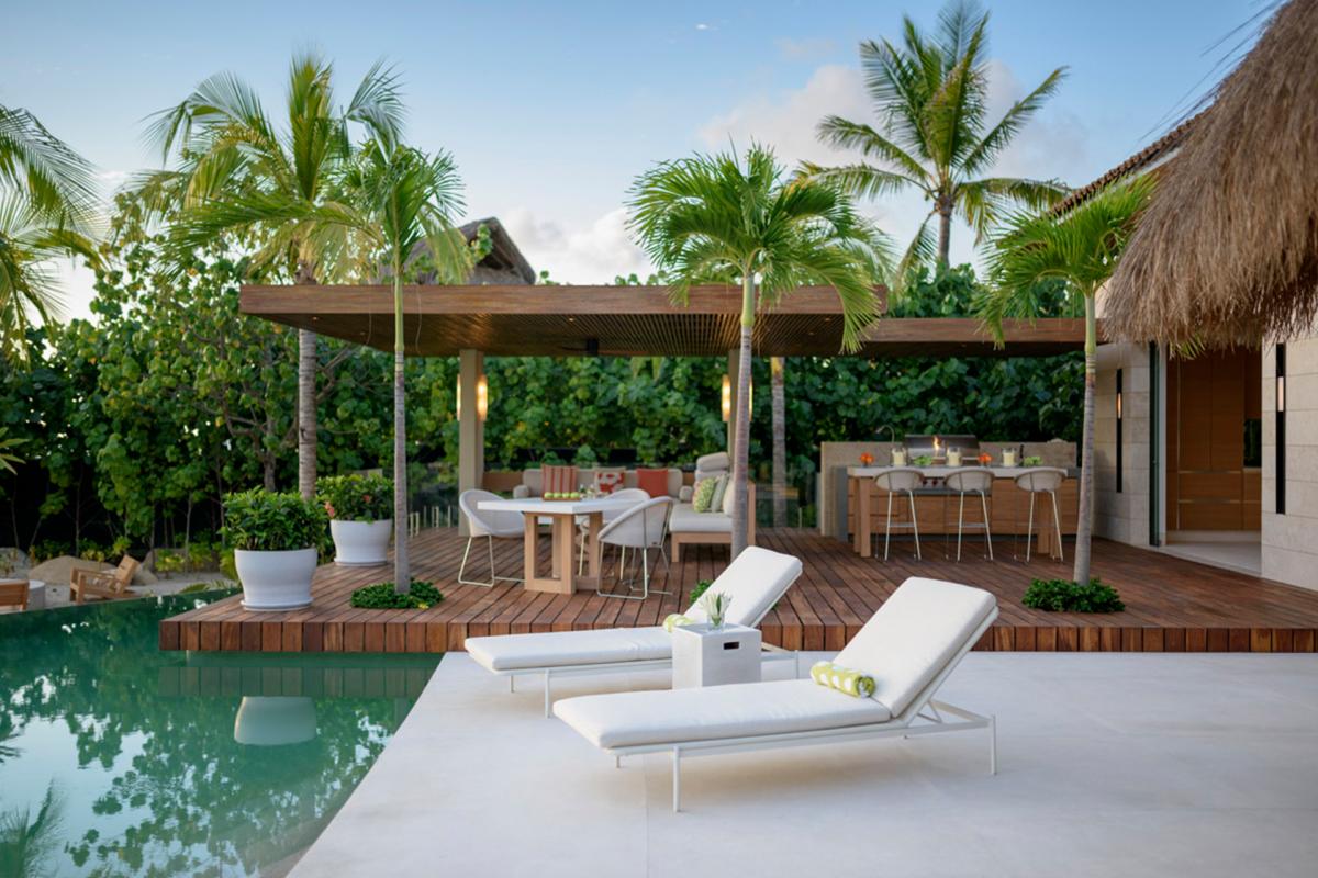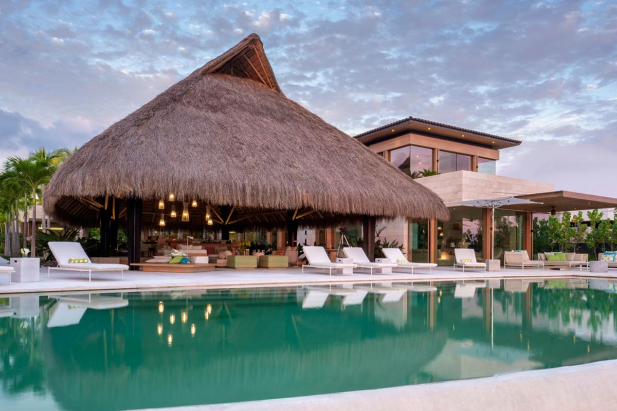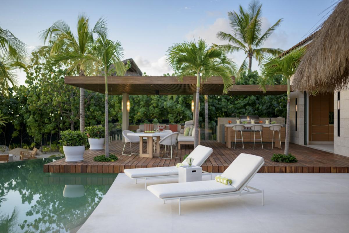 The living areas seamlessly flow between indoor comforts and the al fresco amenities like the pool, beach, fairway, and ocean.
