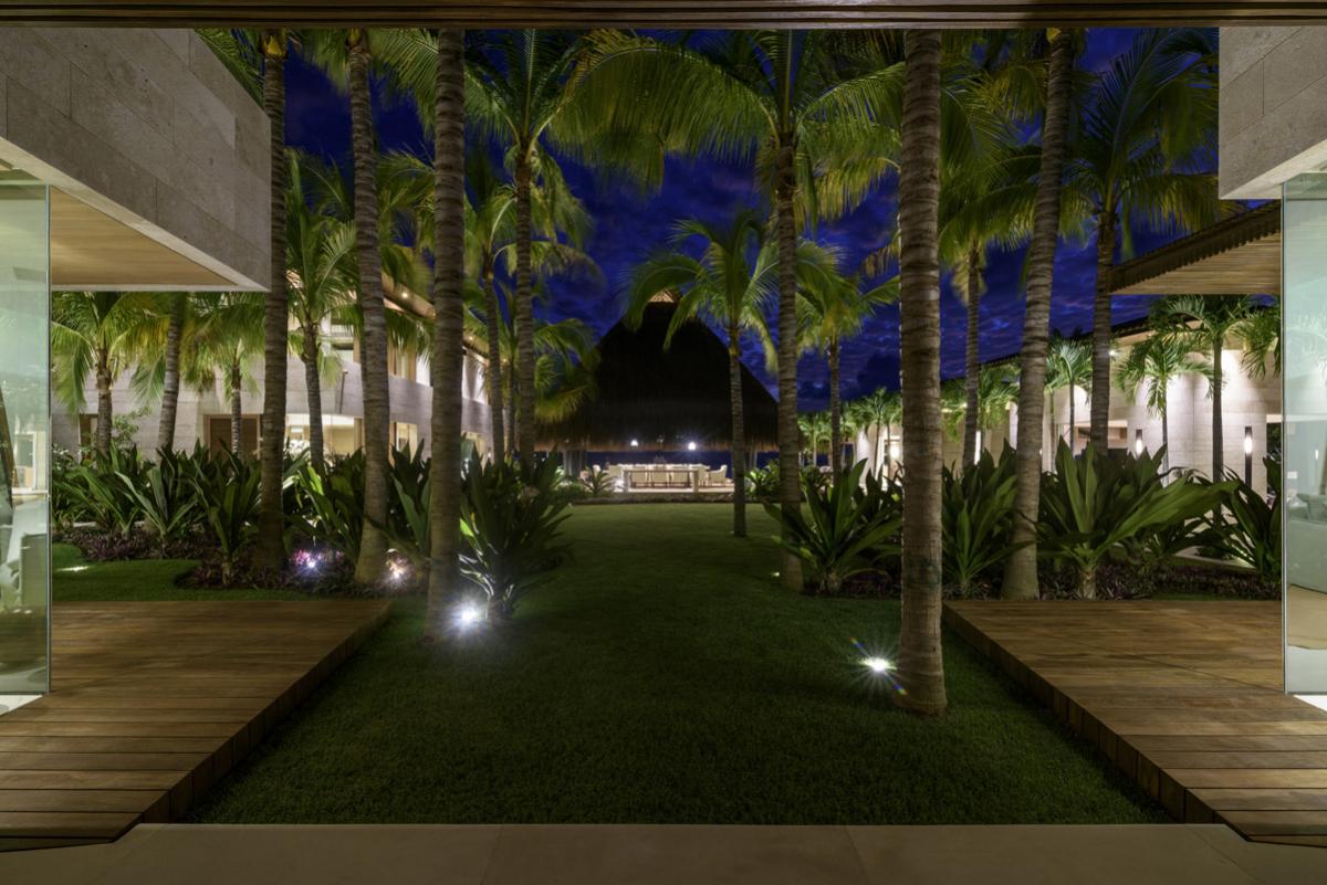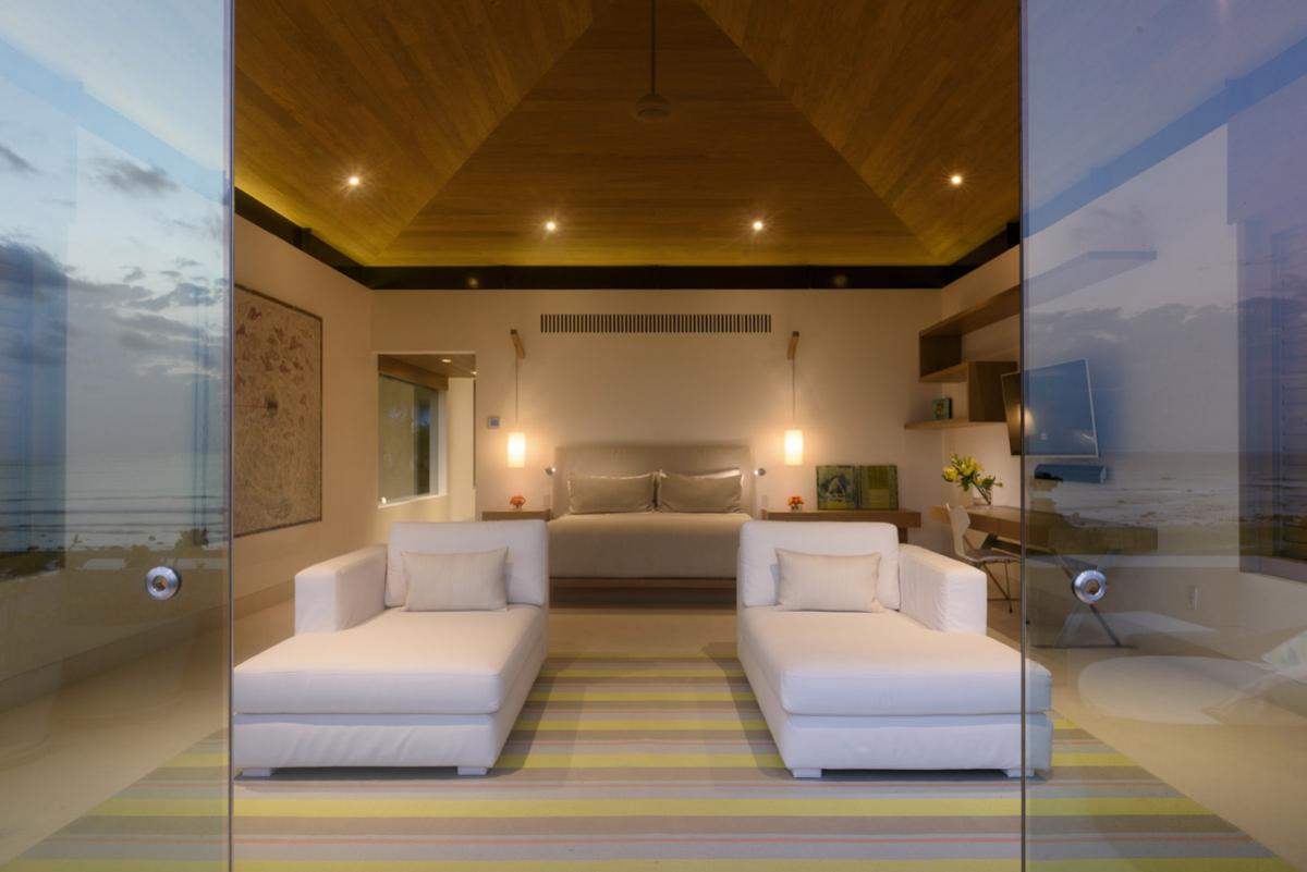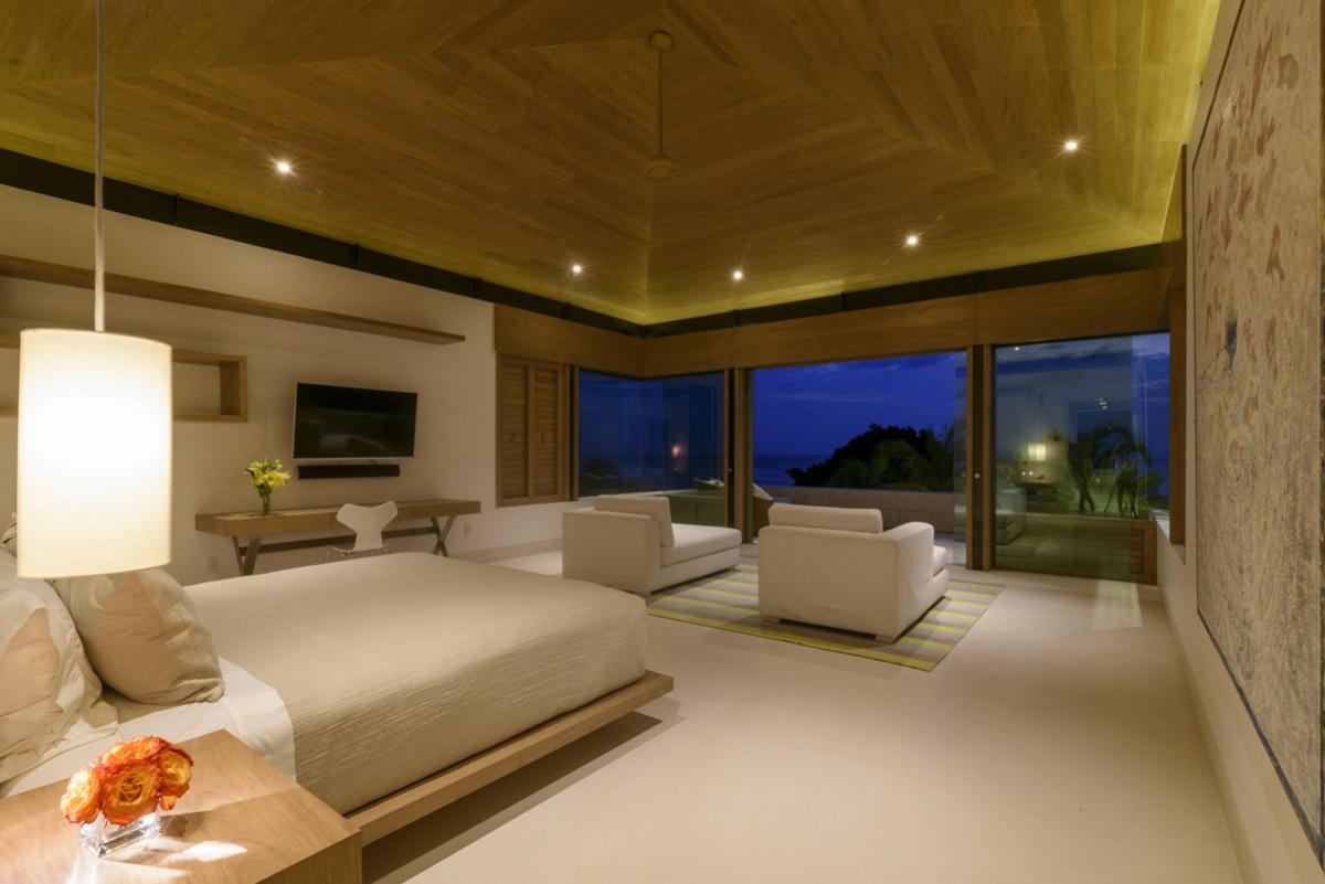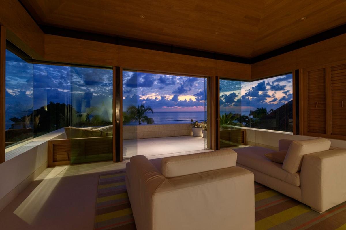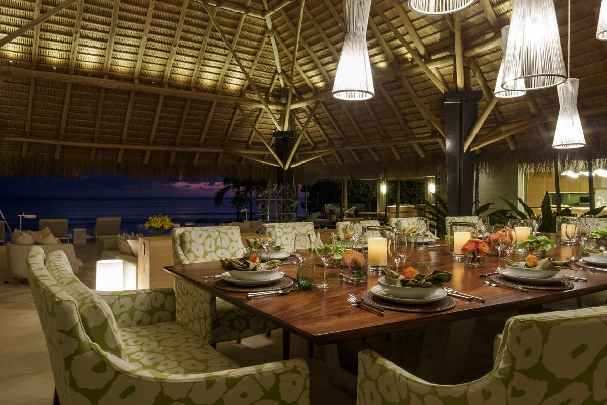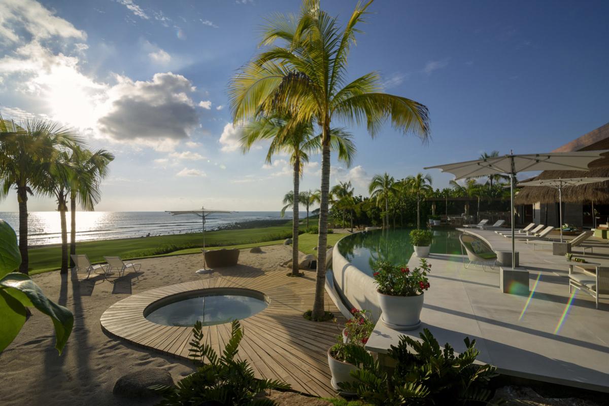 Upon entry into Villa Solaz, guests are greeted with a water feature and a path through the exotic gardens. The elegant open-air living palapa boasts spectacular views of the Pacific Ocean and the Marietta Islands ahead.