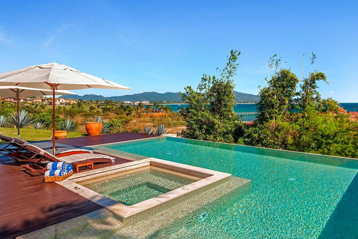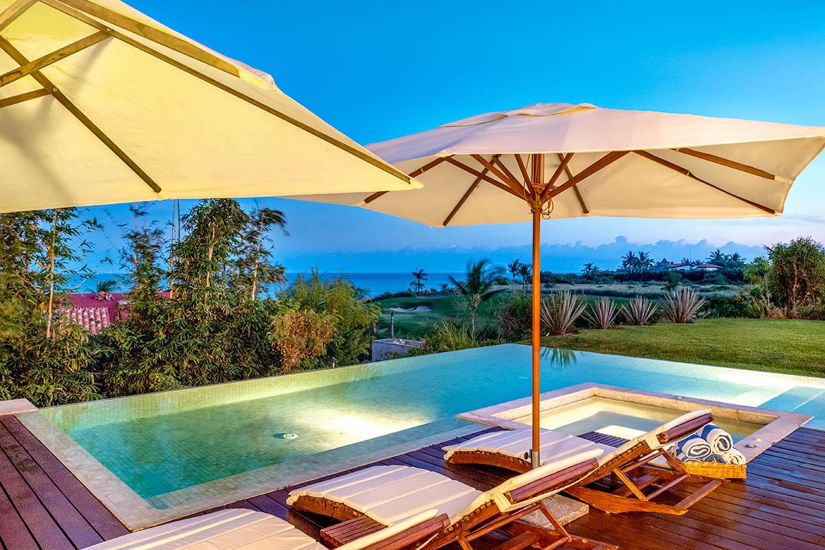 Bay of Banderas lies between two fairways and the Pacific. This leaves Zen Casita 3 at Porta Fortuna with truly spectacular views. Zen Casita 3 is a developer's unit within the luxurious Punta Mita resort. This three bedroom, three and a half bathroom villa can host up to eight guests. Zen Casita 3 sits on a prime corner lot allowing you to enjoy ocean and sunset views from multiple patios and balconies.