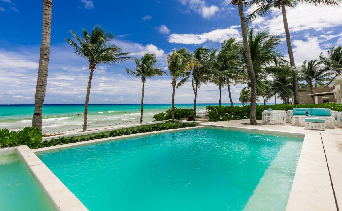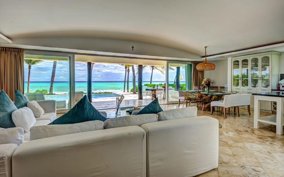 Casa Caramelo is an exceptionally bright, spacious, and elegant beachfront house with an entire wall of windows to enjoy unbeatable Caribbean Sea views from the living room, dining room, kitchen, master bedroom, TV room, and oversized terrace.This gorgeous home features a brand-new swimming pool and quality wooden lounge chairs and patio furniture perfect for a group to enjoy a Mexican vacation in a beachfront dream house.