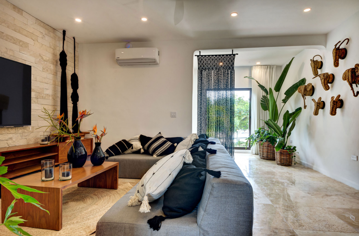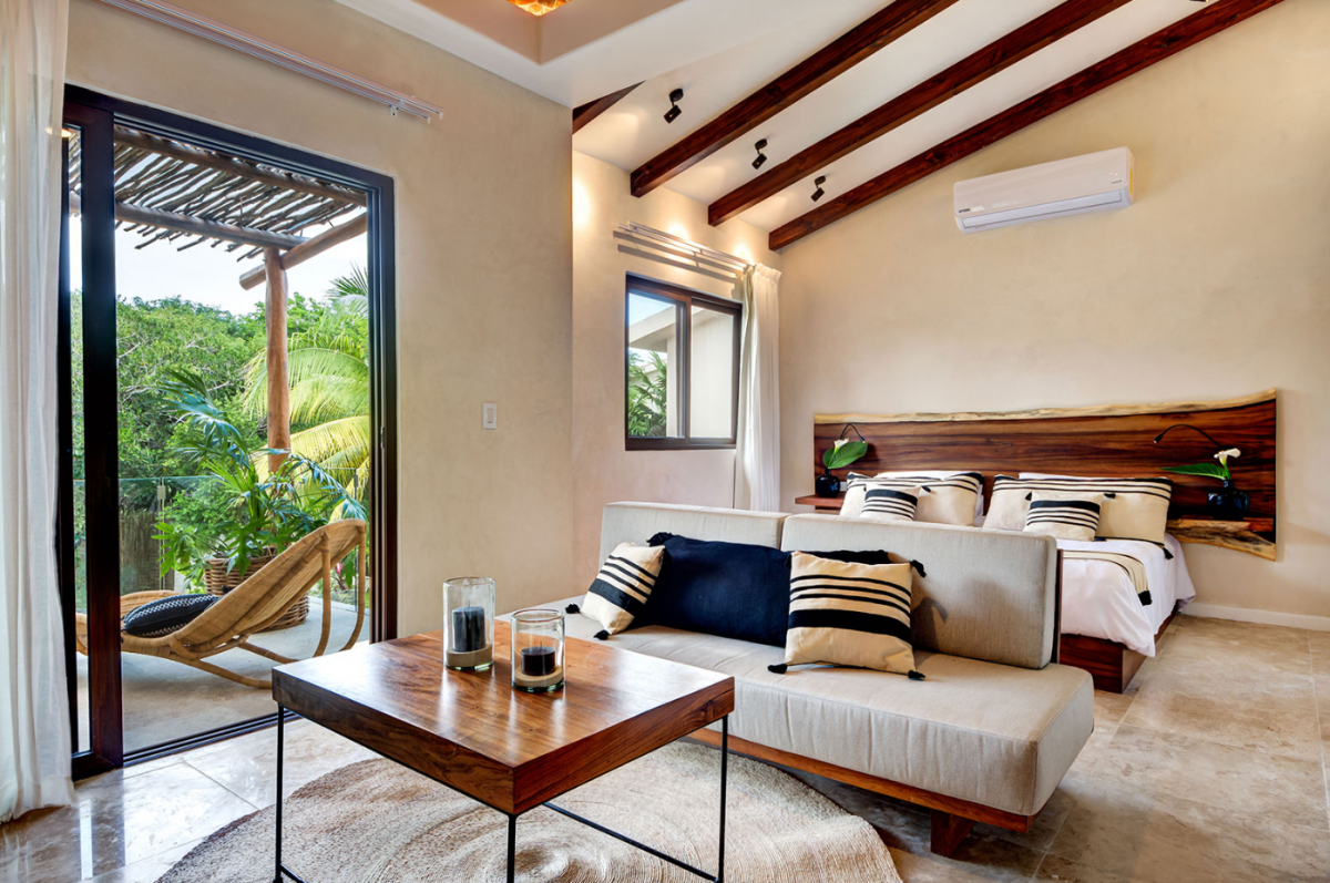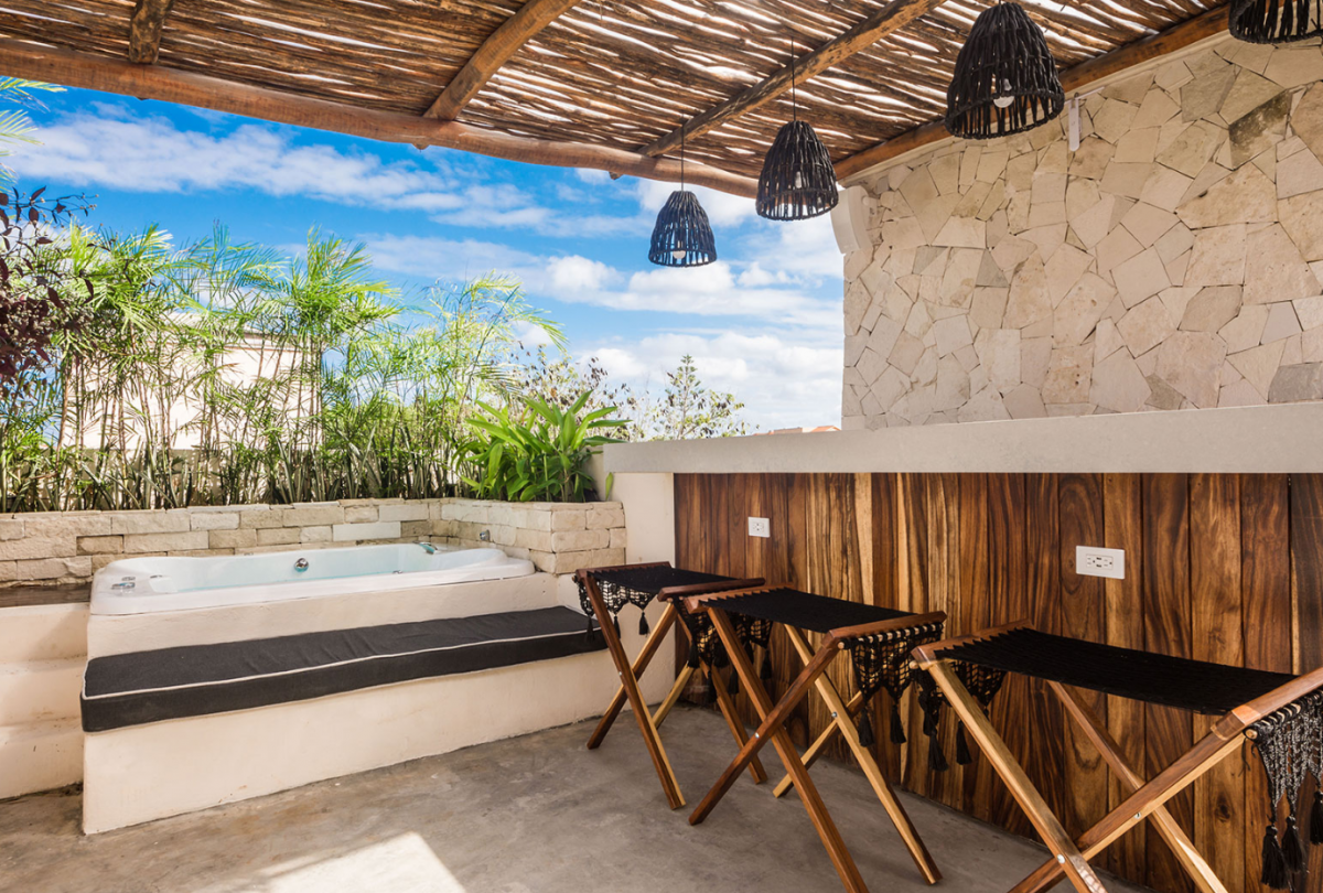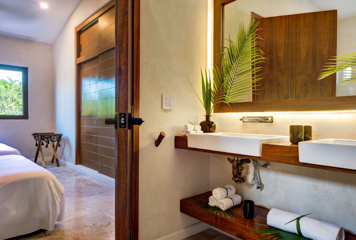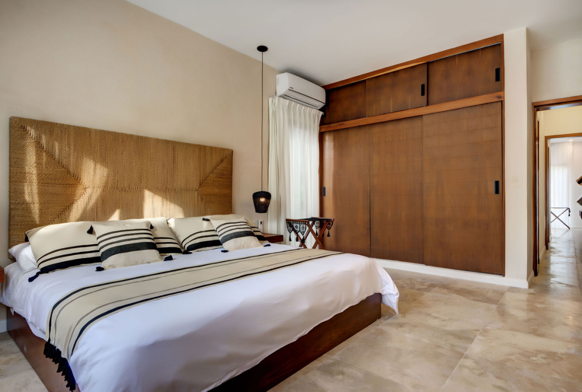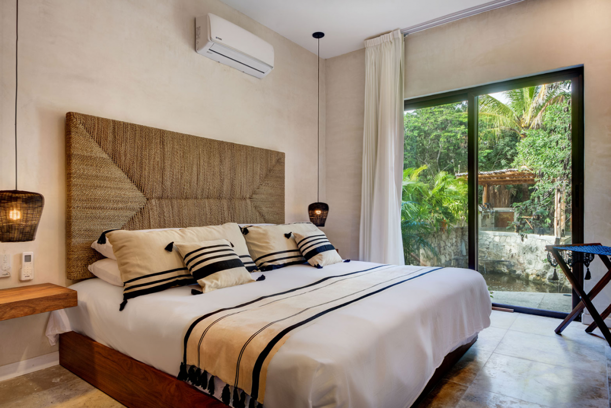 This villa comfortably accommodates up to 12 guests, featuring two ground-floor bedrooms with private bathrooms and three additional upstairs bedrooms, including a sumptuous primary suite. Casa Cenote is designed for outdoor living, offering amenities like a rooftop terrace bar with views of the marina and jungle, a palapa lounge for group activities such as yoga or spa treatments, and a pool area perfect for sunbathing or hosting evening BBQs by a cozy firepit. This elegant home provides a tranquil retreat, ideal for families, couples, or groups seeking a relaxing getaway in a breathtaking setting.