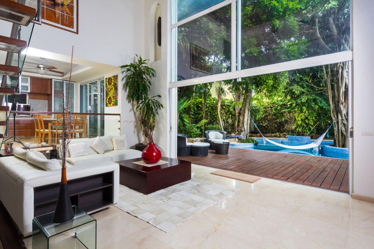 Casa Los Charcos is a uniquely secluded hideaway surrounded by lush, tropical gardens. The villa is an Eden paradise promising privacy, tranquility, serenity, white sandy beaches, wild natural beauty, and a sophisticated, luxurious lifestyle. With its large stretch of secluded beach and lushly landscaped gardens, this exceptional residence captures the essence of the ocean and the tropics at its best while offering the highest standards in accommodations and service. It provides the ideal setting for upscale discriminating travelers, large families or groups, and large-scale entertaining. Privacy, security, and excellence of service are guaranteed round the clock. It is a place where you can relax ocean side or pool side in a serene haven of your own while only minutes away from the exciting daytime activities and famous night life of Quinta Avenida (Fifth Avenue).
