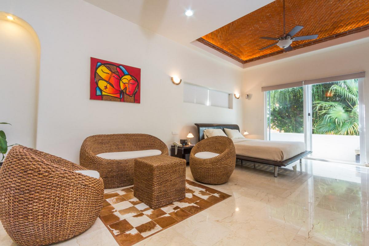 The house itself is a modern, magical marvel; the perfect tropical retreat, it offers a stunning location for guests to relax and experience the peace and tranquility of the Mexican Riviera. This architectural masterpiece offers room and comfort by way of 5,000 square feet of fully air-conditioned living space and a total of 5 spacious bedrooms, including one office/bedroom; each bedroom has its own spacious bathroom. There is a laundry room which doubles as maid's quarters, with a full bathroom and its own entrance.