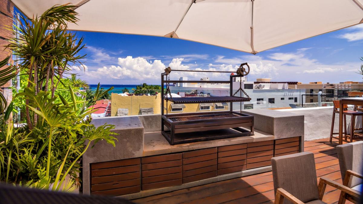 Throw a rooftop party on your outdoor terrace with panoramic ocean views, daybeds and a barbecue dining area. Your private party will enjoy music from high tech playback systems including iPod docking stations and surround sound. Take advantage of the satellite TV, wine fridge, art gallery and vast movie library. When it is time to take the party to the town enjoy the effortless stroll 1/2 a block to 12th street where you will find all the major clubs in Playa del Carmen. ** Please be aware this can mean noise levels are high during peak seasons.
