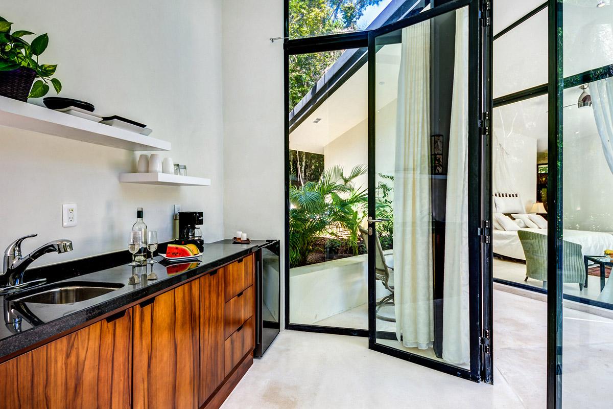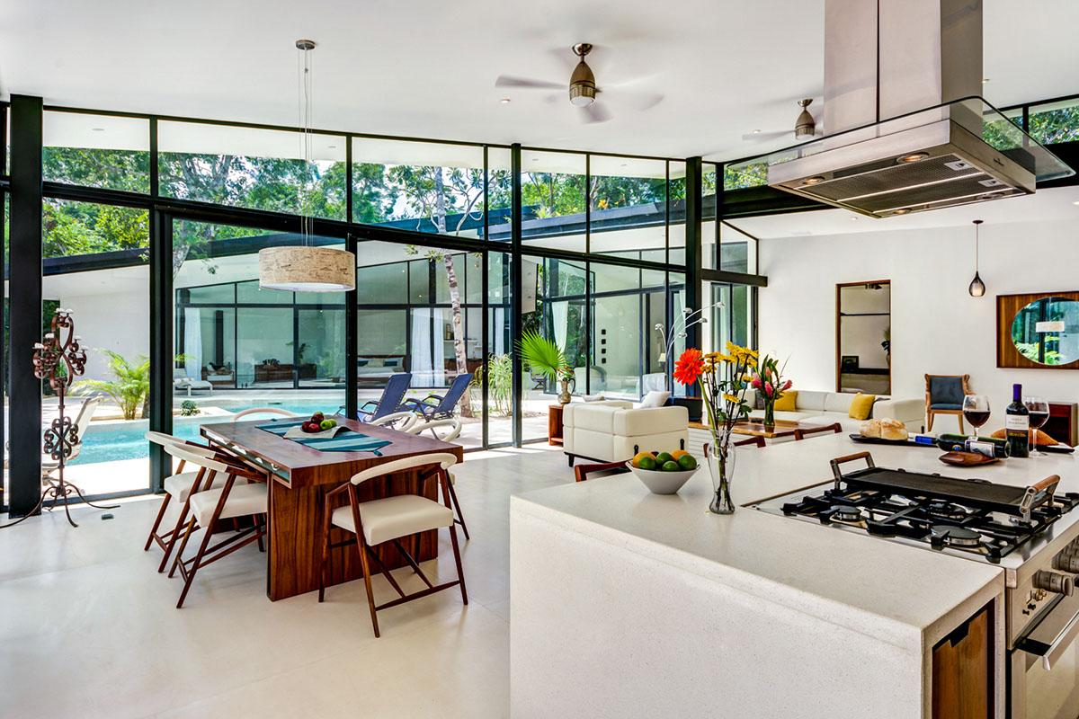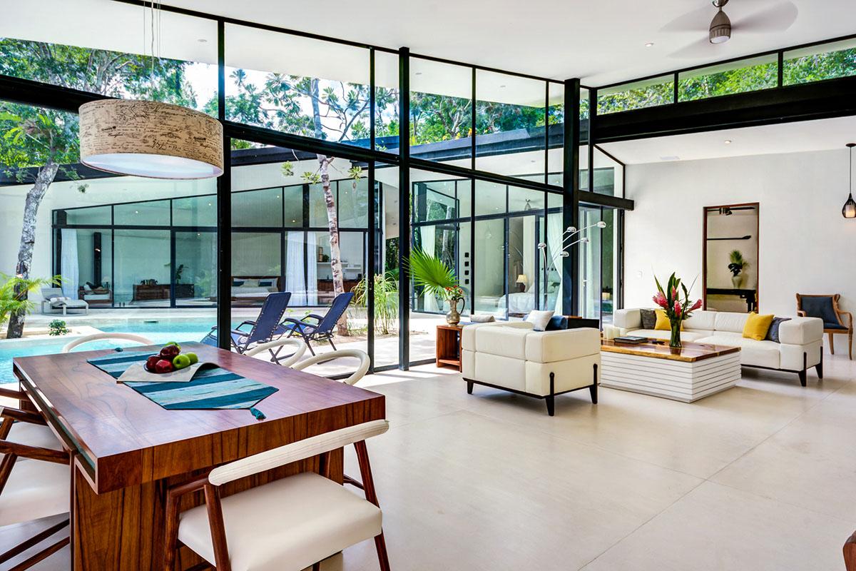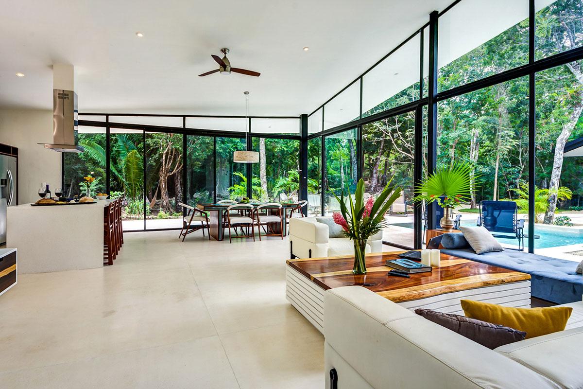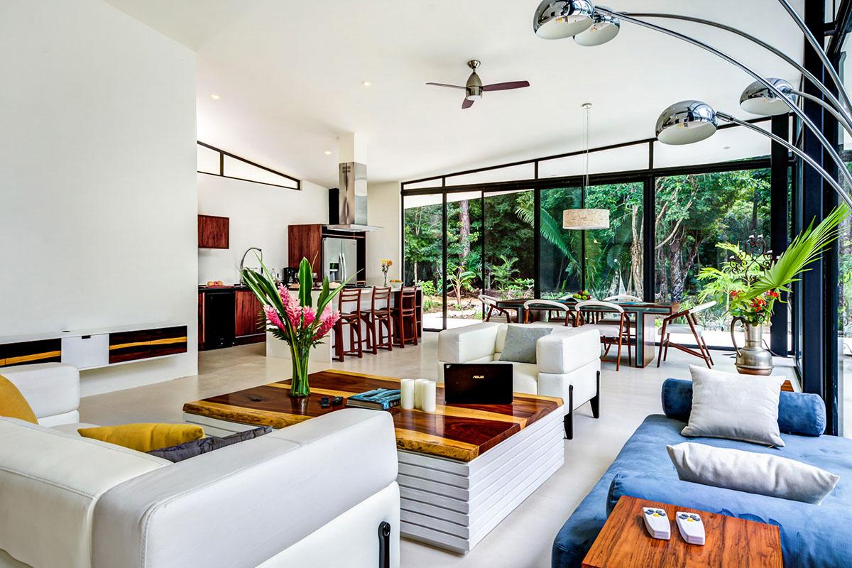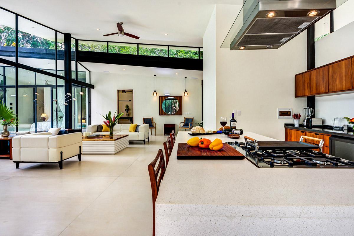 Spaces are open and functional. The two main ensuite bathrooms have private jungle views directly from the baths. The living room and kitchen allows for great cooking and dining.