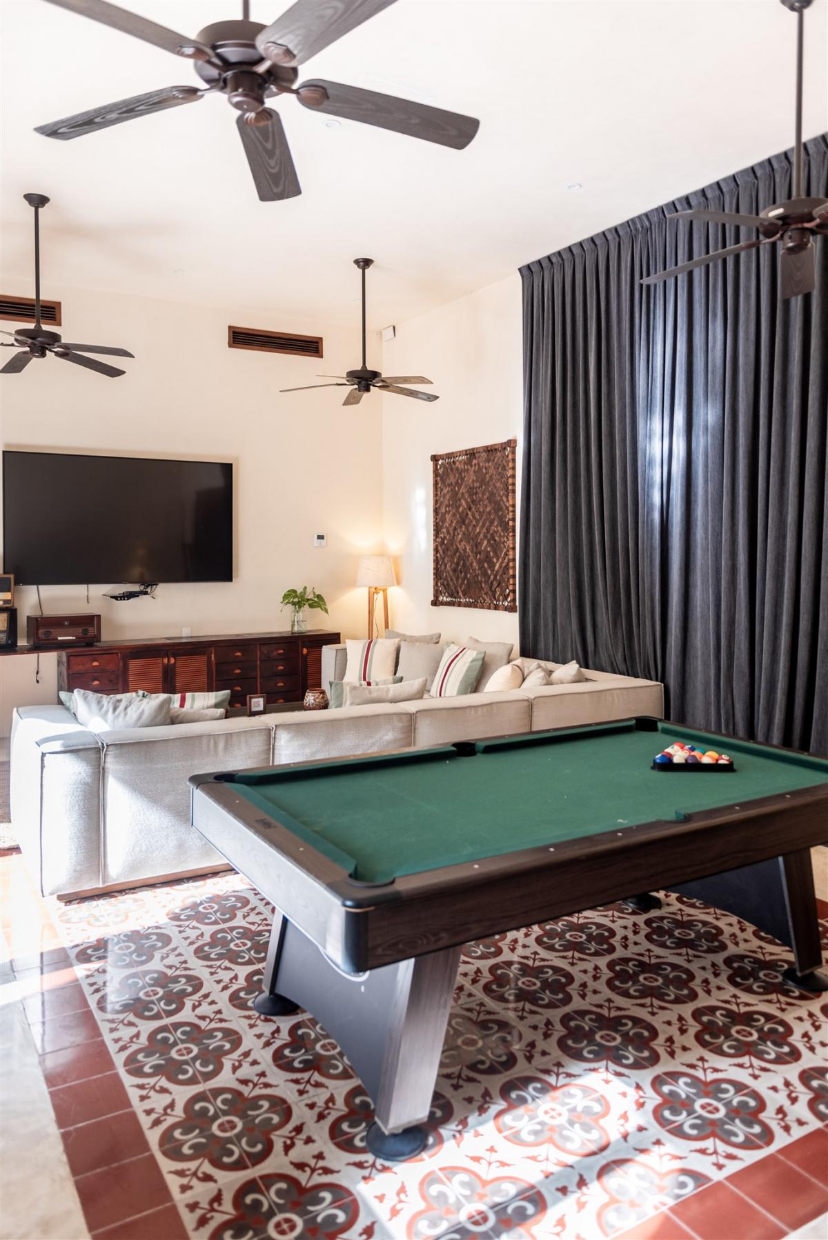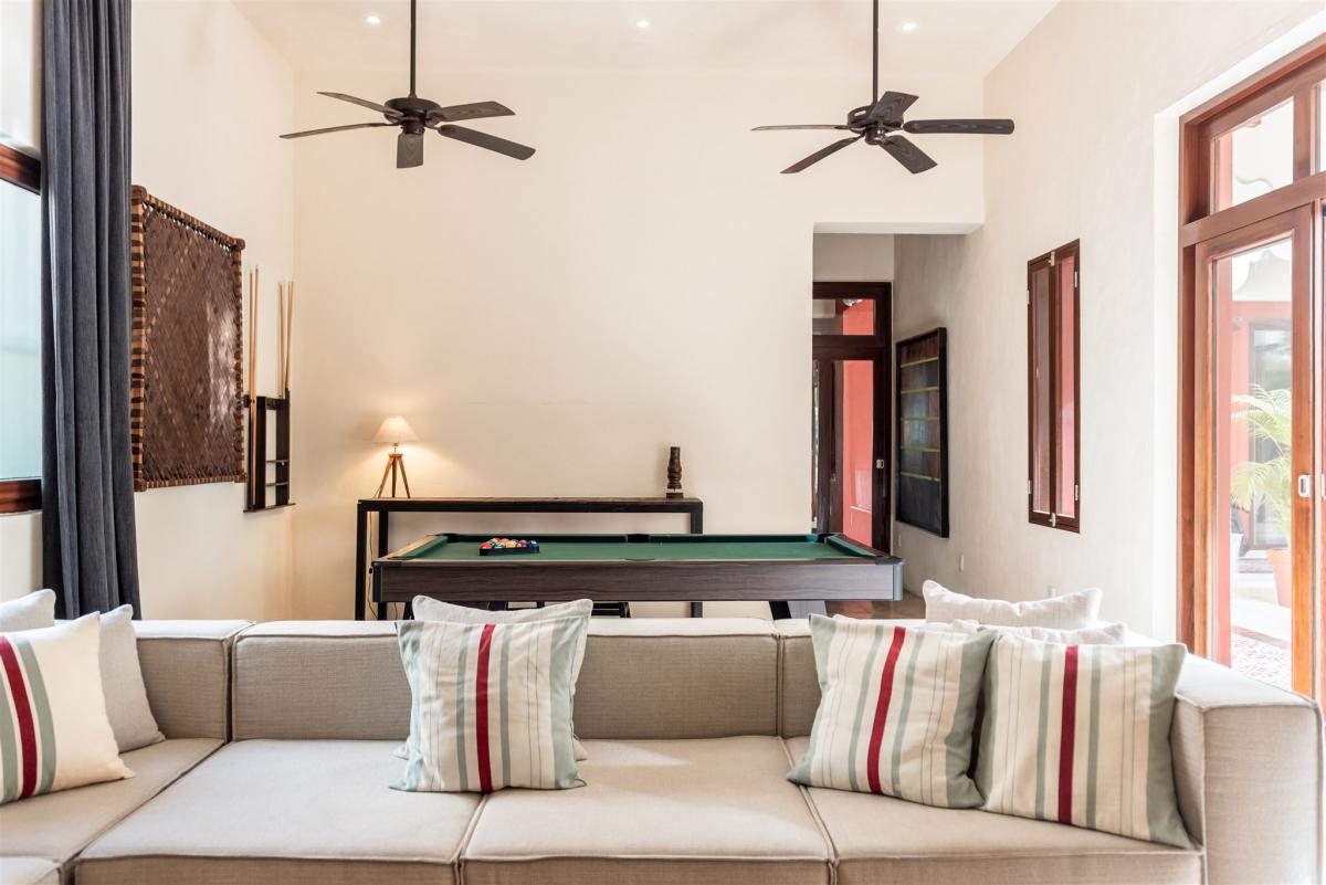 Hacienda Corazon is an incredible 10-bedroom villa located on the soft white sands of Fatima Bay Beach. With an enchanting heart-shaped tropical garden leading to the villa, Hacienda Corazon is a world of luxury. The center of the villa is a courtyard with high arches with views of the ocean and beach. On the lower floor, off the courtyard, there are 2 large living rooms, one of which has a huge flat-screen TV with satellite, and the other open-plan living leads to the enormous gourmet kitchen with all modern conveniences. On the west wing is a large games room with a flat-screen TV, Billiard table, and Table Tennis-hours of entertainment are guaranteed.